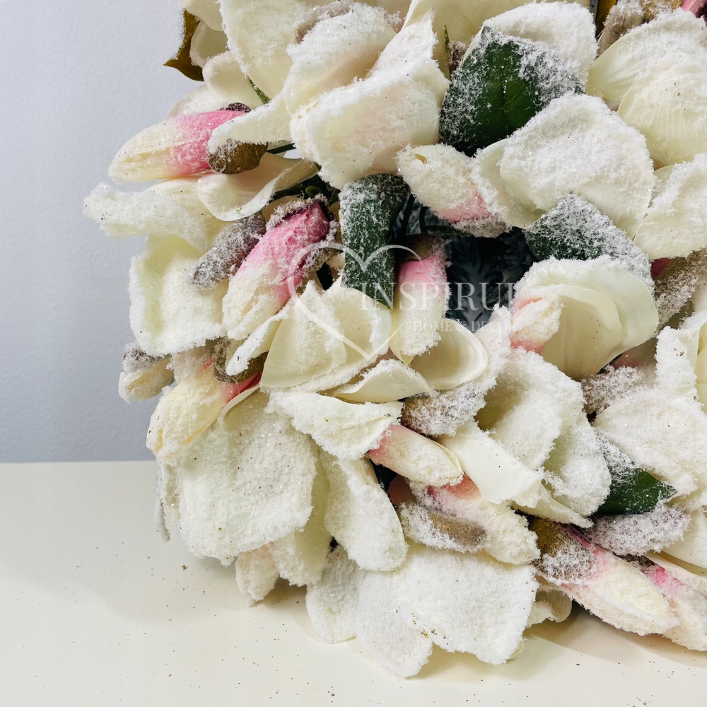 РІЗДВЯНИЙ ВІНОК З МАГНОЛІЯМИ ЗАСНІЖЕНИЙ ДВЕРНИЙ ВІНОК МАГНОЛІЇ 32см
