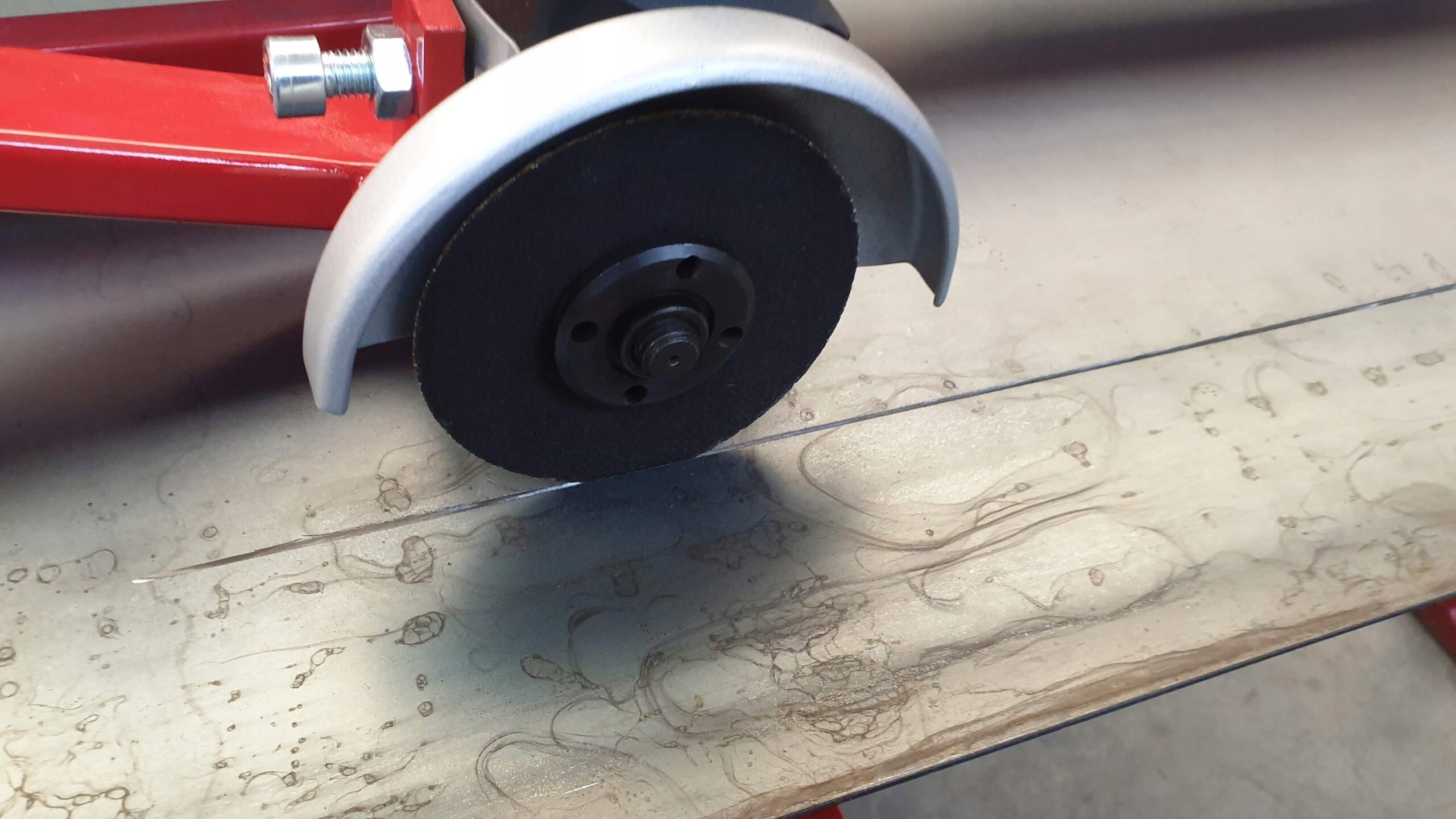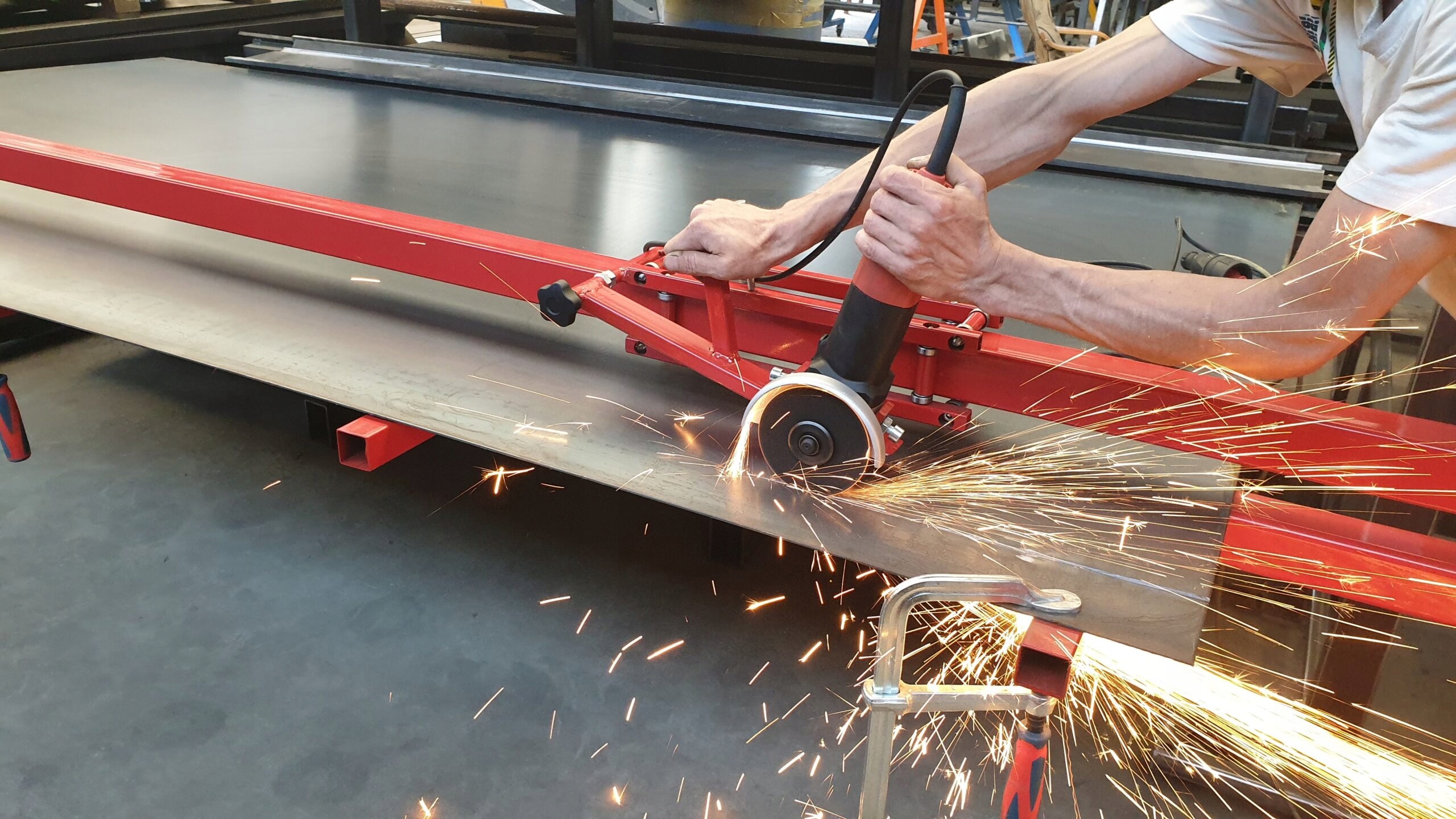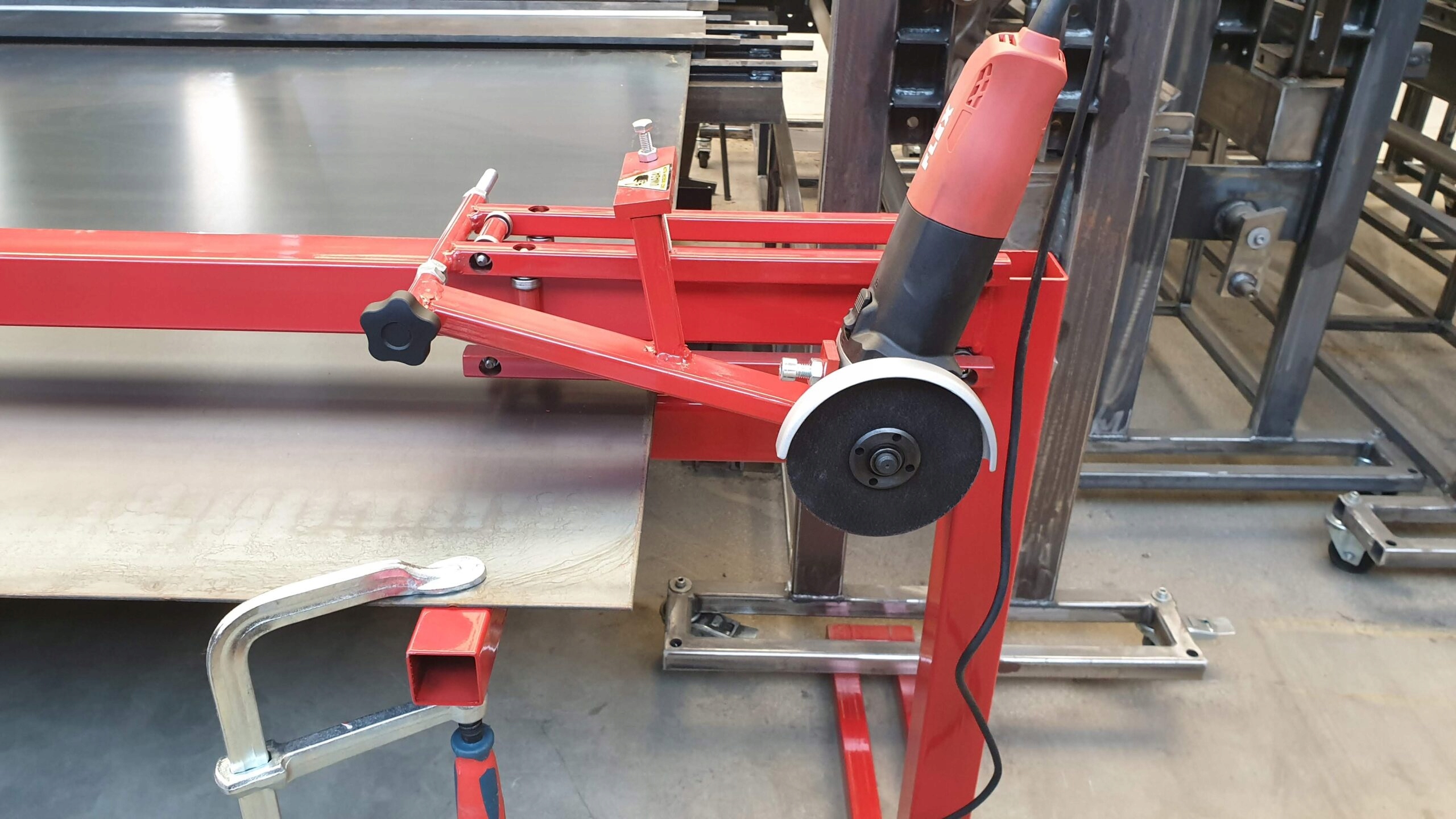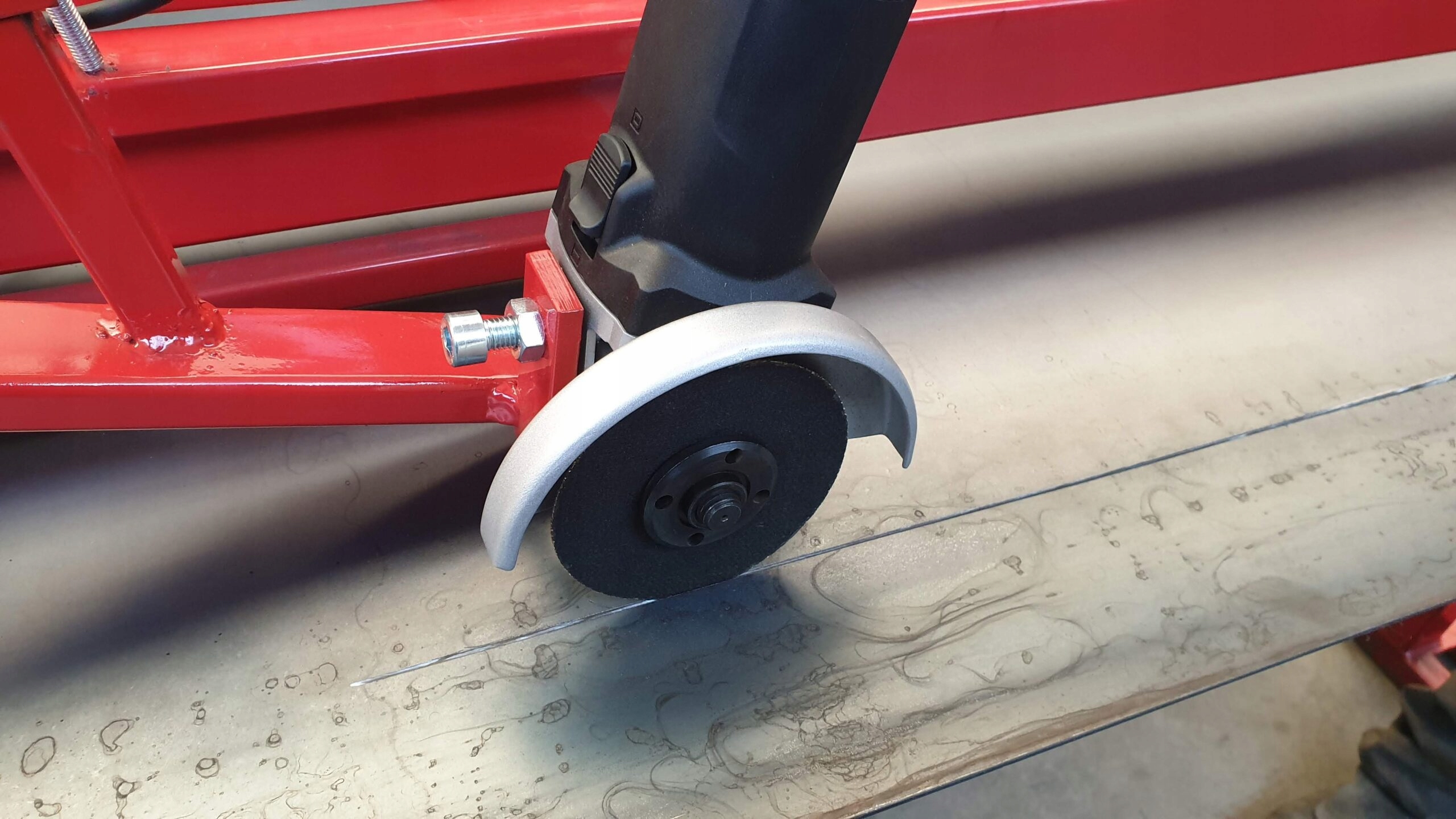 Насадка для різання листового металу до кутової шліфувальної машини призначена для простих розрізів більш товстих листів до 3000мм. Направляючий візок шліфувальної машини дозволяє прямо та рівномірно різати листовий метал.