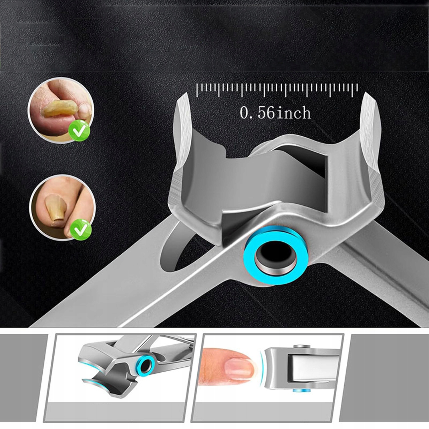 широке лезо з нержавіючої сталі точно вирізане товсті нігті без прорізування зубів. Широка ручка проти тисту забезпечує комфорт використання.
