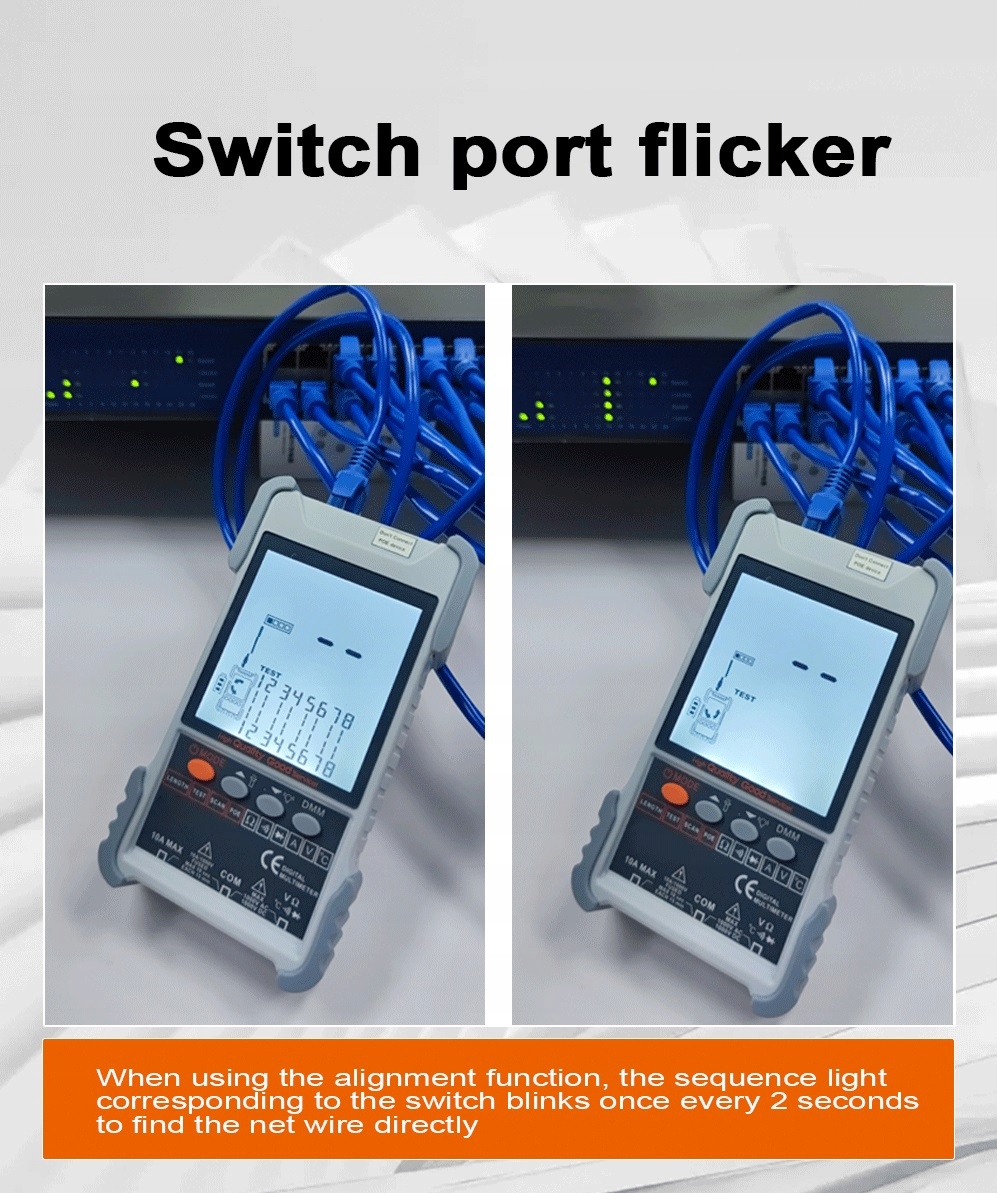 Цей лічильник поєднує функції відстеження кабелю та вимірювання його довжини. Перевагою цього лічильника є велика дистанція відстеження, чіткі звукові сигнали, швидке і точне вимірювання довжини кабелю. Лічильник є практичним інструментом для лабораторій, фабрик, монтажників мереж поліцейських автомобілів і техніків. Він може вимірювати довжину мережевого кабелю, коротке замикання та розрив у реальному часі. Функція відстеження кабелю може швидко й ефективно знайти цільовий кабель у великій кількості кабелів. Цю функцію можна використовувати в телефонних системах, комп’ютерних мережах, кабелях BNC та інших металевих мережевих кабелях.