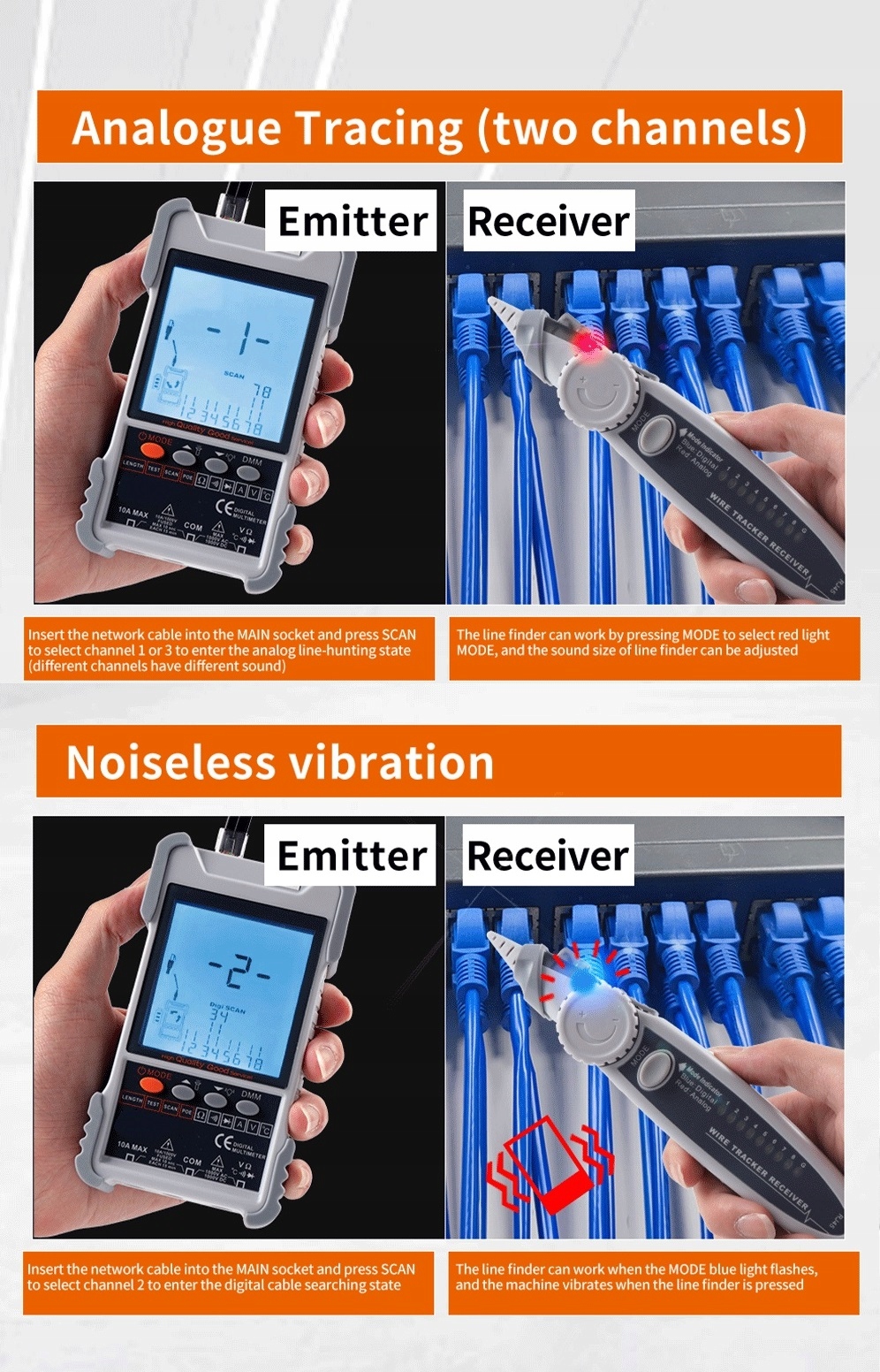 - Функція відстеження кабелю:може швидко й ефективно знайти цільовий кабель у великій кількості кабелів.