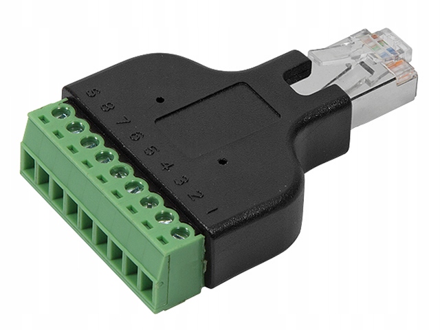 - Тип вилки: RJ45/8P8C, гвинтові клеми TERMINAL BLOCK для загвинчування 9 проводів