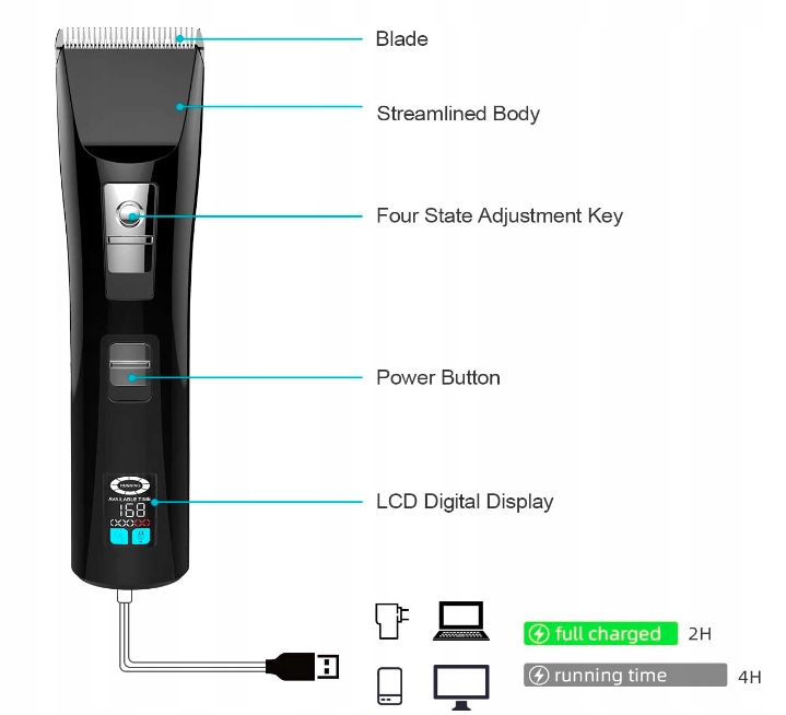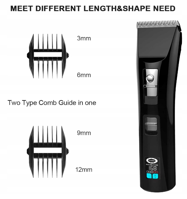 - Інтелектуальний РК -дисплей: Насолоджуйтесь ріжучою машиною для собак для домашніх тварин, він був розроблений з РК -дисплеєм, який нагадує вам про роботу та ємність акумулятора, що допомагає краще контролювати роботу, пов’язану з доглядом за тваринами.