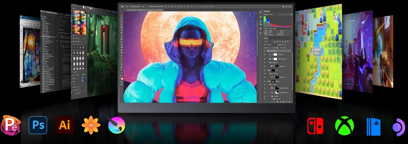 - 【більші екрани беруть із собою скрізь】 портативний монітор з діагональною 17,3 "з HDR 2560 x 1440 Гц 100% SRGB, робить зображення живим, а текст є досить чітким, щоб побачити ретельно. Підключіться до смартфонів, таблеток та ноутбуків з одним кабелем для більшого екрану. Game Monitor оснащений матовим екраном без фібриляції, щоб зменшити мерехтіння та вібрацію.