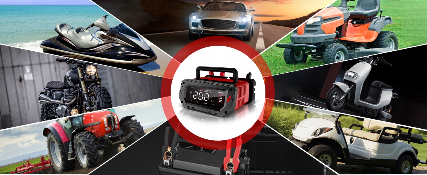 🚗【 Широкі програми】 Зарядка для автомобільних акумуляторів використовується лише для акумуляторів LIFEPO4 12В/24В, літієвих акумуляторів та акумуляторів кислоти (AGM, кальцій, гель, MF, EFB, SLA, VRLA, WET тощо). Він широко використовується для забезпечення безпечної та ефективної зарядки автомобілів, мотоциклів, човнів, косарок тощо.