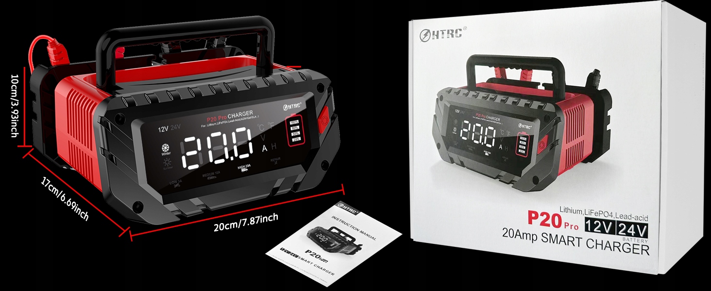 🚤【 зарядний пристрій 12 В/24 В автоматично розпізнає напругу акумулятора і може перемикатися між 4 режимами зарядки при натисканні однієї кнопки. РК -екран відображає напругу акумулятора, струм зарядки, температуру зарядки, рівень заряду акумулятора тощо. Автомобільний зарядний пристрій автоматично регулює потужність зарядки до температури навколишнього середовища.