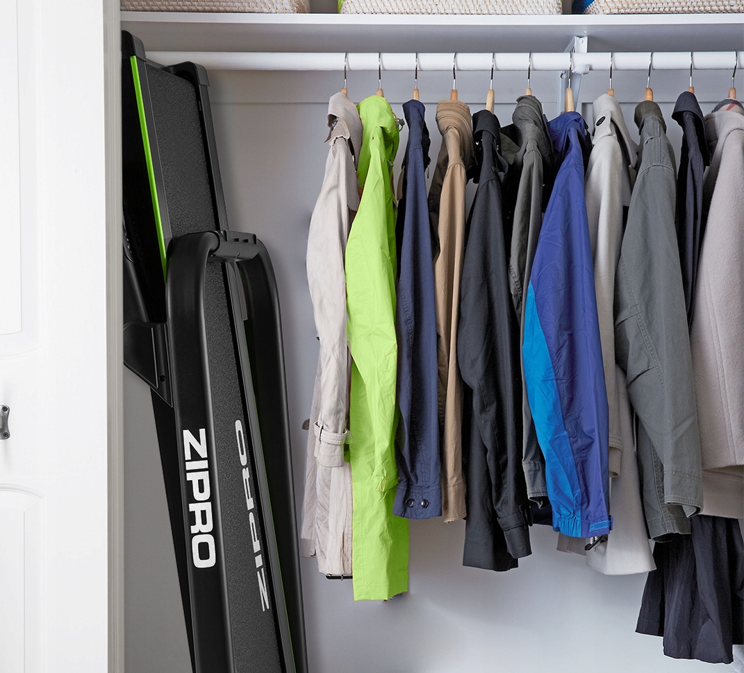 Пристрій не потребує додаткового місця. Проста у використанні складна конструкція дозволяє заховати бігову доріжку після тренування, наприклад, під ліжком або за шафою, а встановлені колеса полегшують ефективне транспортування. Забудьте про черги в спортзалі, дорогі абонементи чи несприятливі умови на вулиці та спалюйте калорії разом із ZIPRO JOGGER.