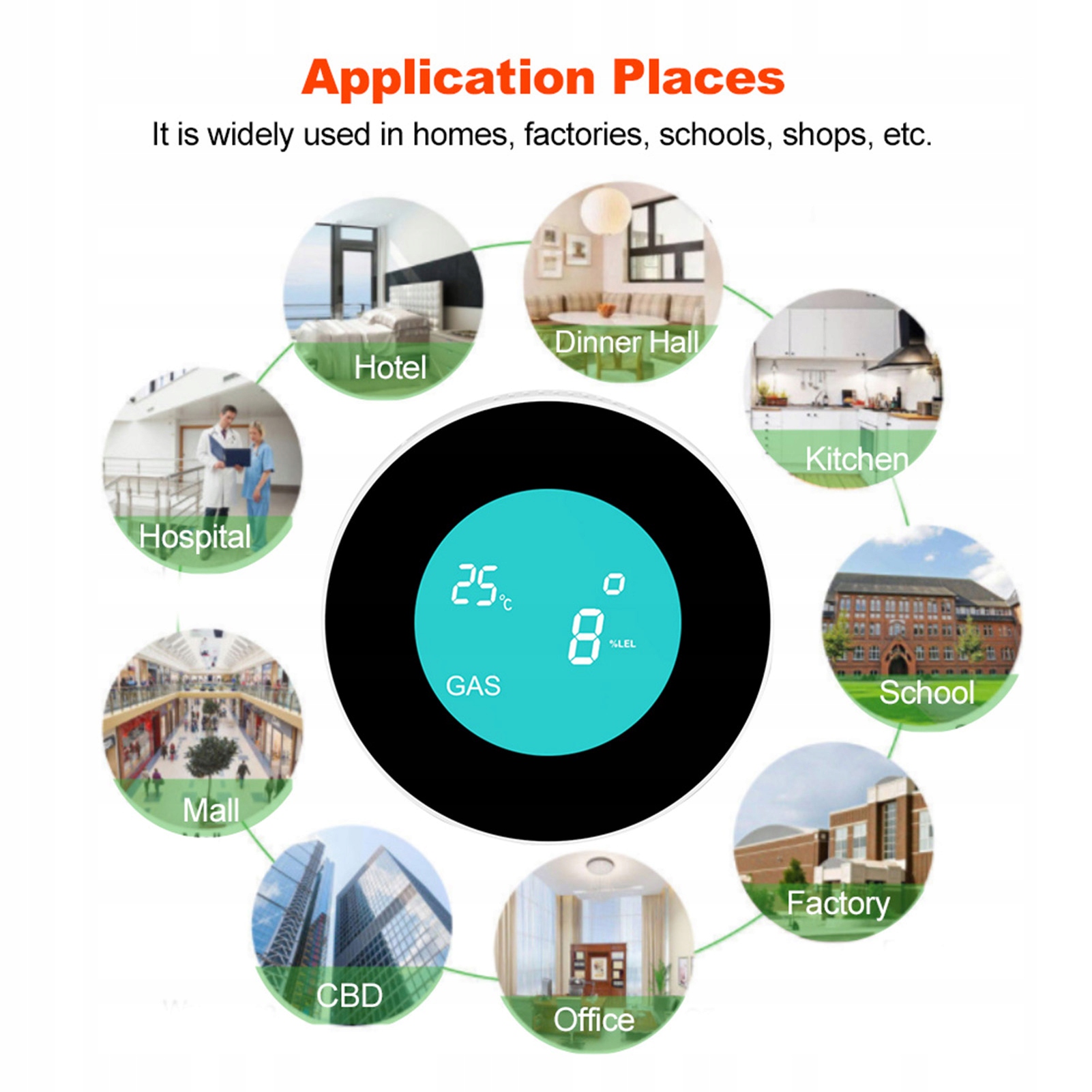 1. Цей елемент є інтелектуальним детектором горючого газу з функцією звукового сигналу, який може відображати концентрацію газу. При спрацьовуванні детектора газу лунає сигнал тривоги за допомогою внутрішньої сирени. 2、Використовує стабільний і надійний твердотільний датчик для захисту вашого будинку від небезпеки легкозаймистих газів, таких як природний газ, метан тощо. 3、Детектор газу широко використовується на кухні, у вітальні, гаражі, торговому центрі, готелі, ресторані, офісна будівля, школа, банк, бібліотека, комп’ютерний зал, склад тощо. 4. Цей газовий детектор можна під’єднати до більшості продуктів із підтримкою tuya. 5. Чіткий РК-дисплей, чіткий цифровий дисплей може чітко представити концентрацію горючого газу та сигнал WIFI. 6. Детектор газу в основному використовується на кухні для виявлення витоків природного газу (метану), запобігання потенційному вибуху газу та забезпечення безпеки сім'ї. 7. Коли концентрація газу досягне 8% від НПК, детектор газу подасть звуковий сигнал на 85 дБ і автоматично надішле сповіщення в додаток. 8, з’єднання WIFI, інтелектуальний пульт дистанційного керування APP, ручний тест, ручне вимкнення звуку. 9, новий дизайн, простий у встановленні, зручний у використанні.