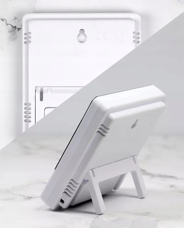 Ви можете розмістити термометр, наприклад, на полиці чи столі, витягнувши підставку, або повісити його на стіну за допомогою гачка.
