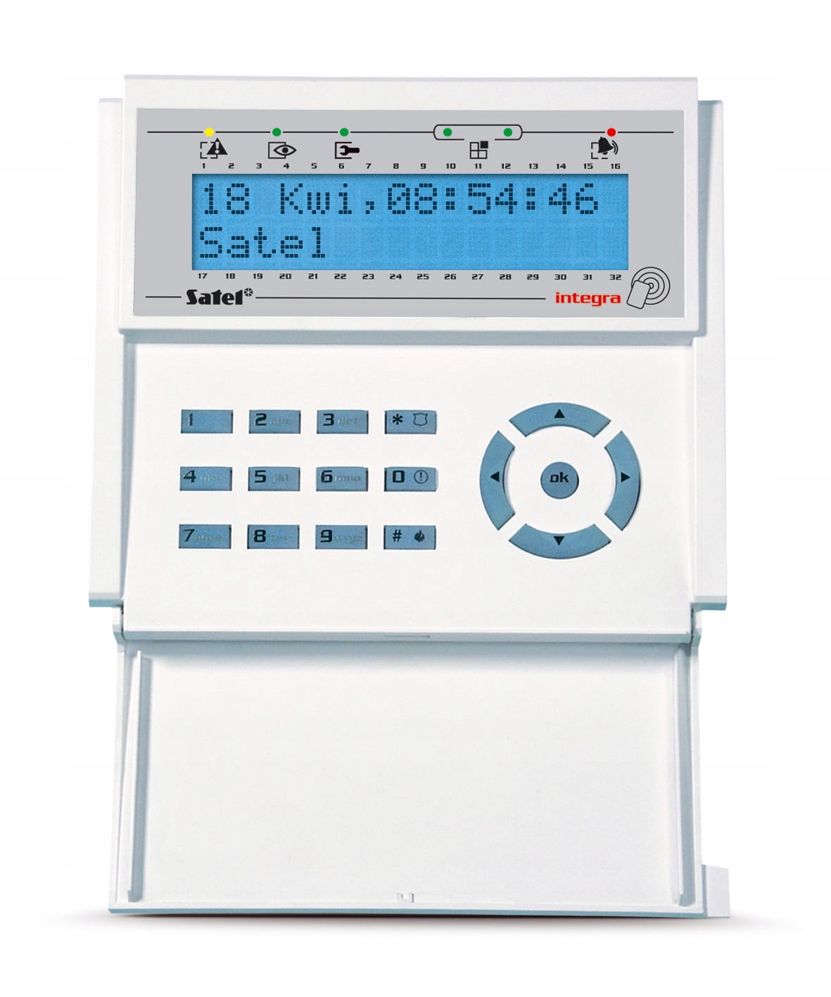 Клавіатура INT-KLCDR - це пристрій, призначений для керування серією сигналізація INTEGRA. Вбудований РК-дисплей, завдяки чітким текстовим повідомленням, дозволяє дуже швидко та легко використовувати повний функціонал нашої системи. Крім того, клавіатура має вбудований зчитувач безконтактних карток, що дозволяє повноцінно працювати з системою без необхідності запам’ятовувати пароль.