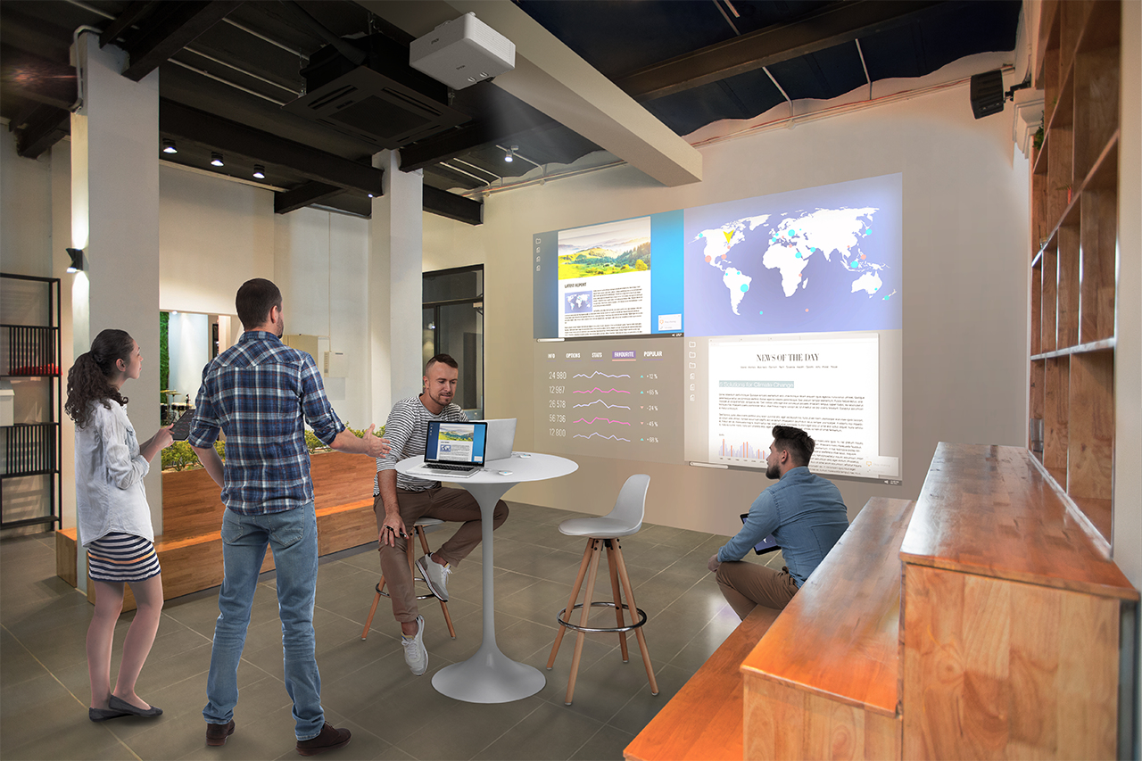 - Корисна під час збереження соціальної відстані: масштабоване зображення з діагональною до 500 дюймів
