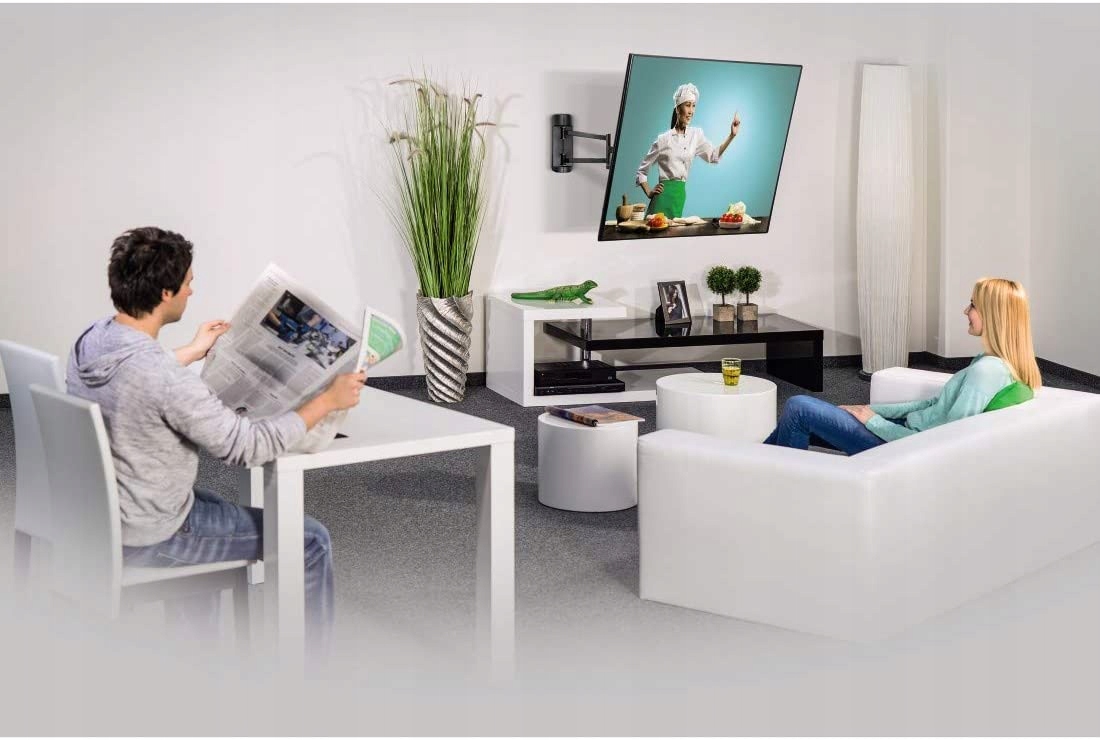 Для встановлення плоских екранів із діагоналлю екрана від 25 до 117 см (від 10 до 46 дюймів) Система «Easy fix» для легкого регулювання рівня телевізора та шаблон для свердління дозволяють швидко та легко встановити настінне кріплення та телевізор . Кришка кабельного вводу зберігає кабельну розводку в порядку та запобігає пошкодженню. Якщо прикріпити до стіни, інсталяцію можна вирівняти горизонтально за допомогою системи отворів. Надзвичайно довгий кронштейн дозволяє повертати телевізор під кутом 90 градусів до стіни. Дуже практичний і економить місце дизайн дозволяє оптимально розташувати ваш телевізор із плоским екраном у будь-якій кімнаті будинку Сумісність із стандартами VESA до 200 x 200 Нахил до + 5 / -15 ° Поворот на 180 ° на 3 петлях Відстань від стіни - максимум 79 см.