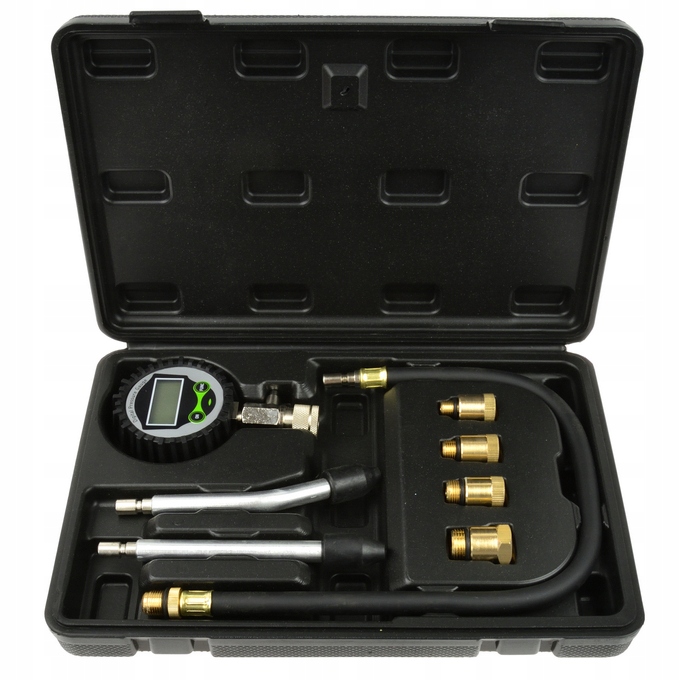 РК-тестер для вимірювання тиску компресії в двигунах внутрішнього згоряння від відомого бренду GEKO. Вимірювач дозволяє точно перевіряти тиск стиснення в бензинових двигунах автомобілів і мотоциклів. Універсальність тестера забезпечується набором адаптерів для свічкових гнізд і двома жорсткими вимірювальними наконечниками з гумовими наконечниками.