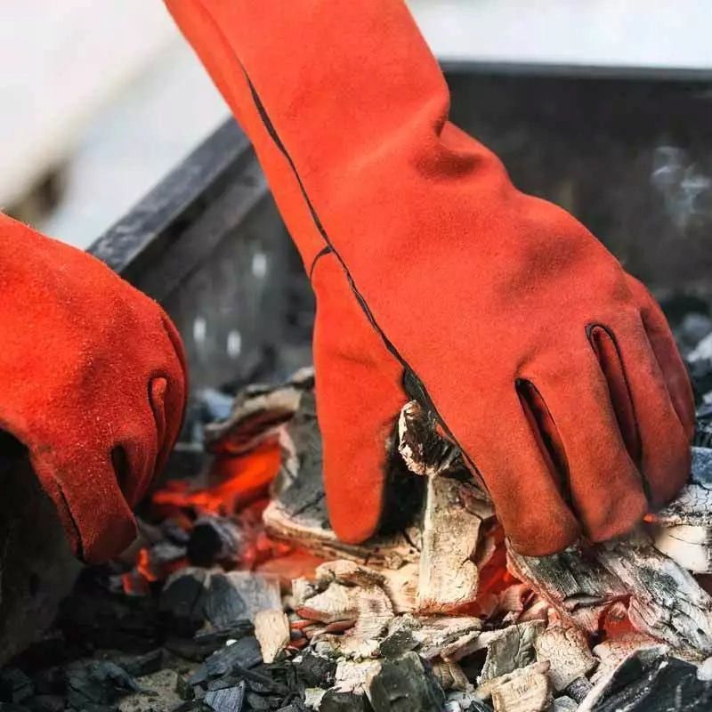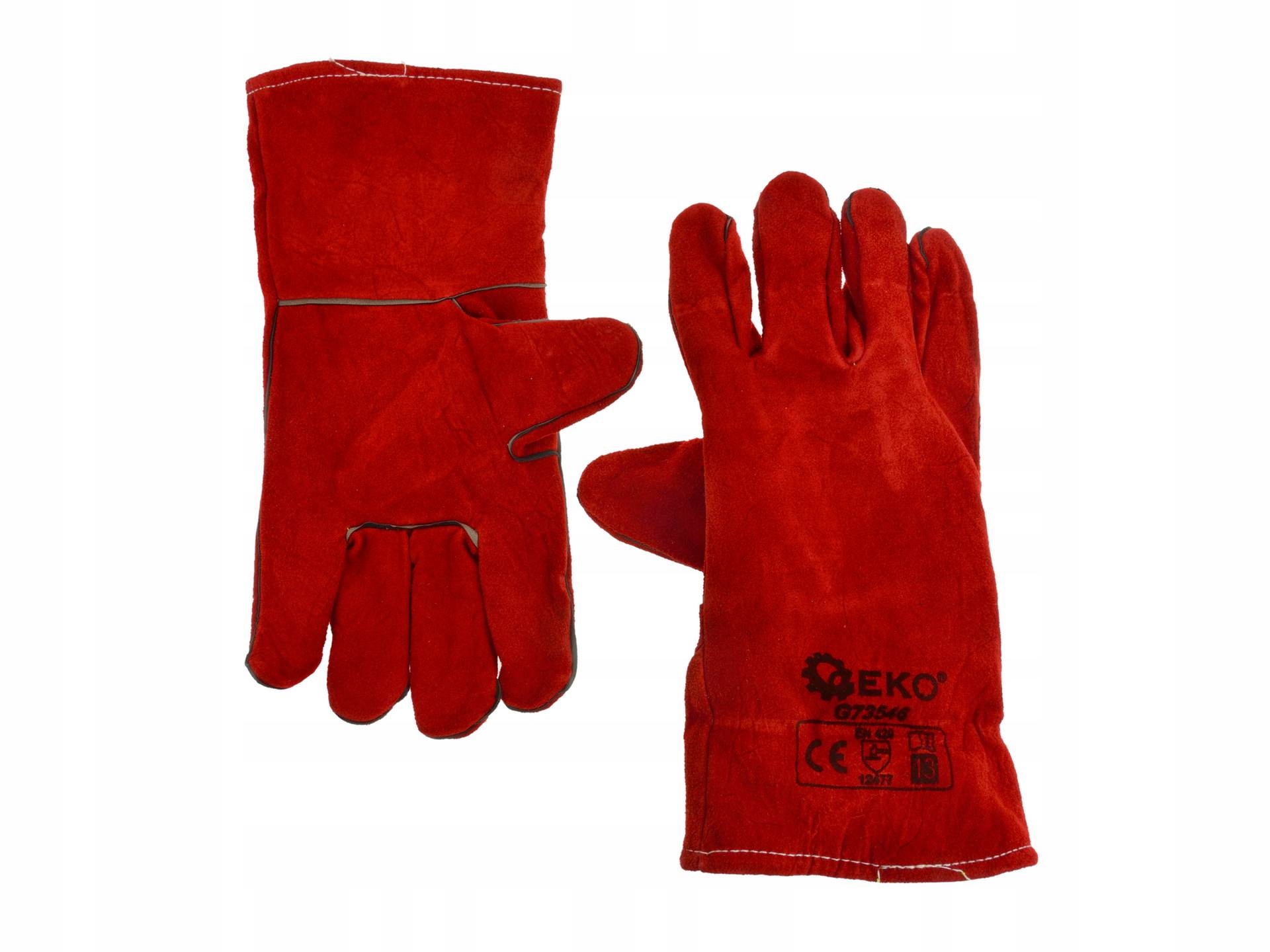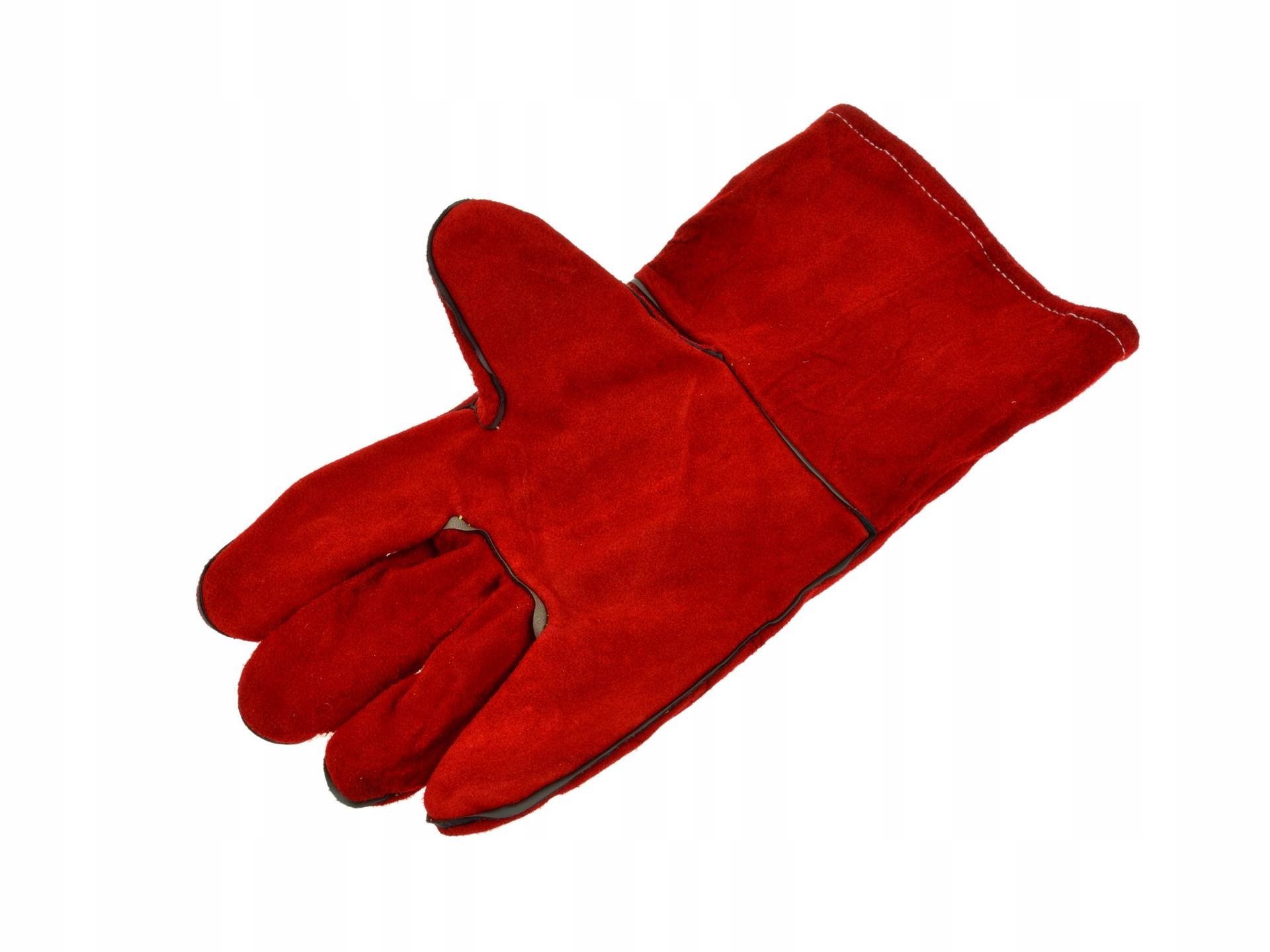 RĘKAWICE SPAWALNICZE OCHRONNE DŁUGIE SKÓRZANE TRUDNOPALNE CZERWONE