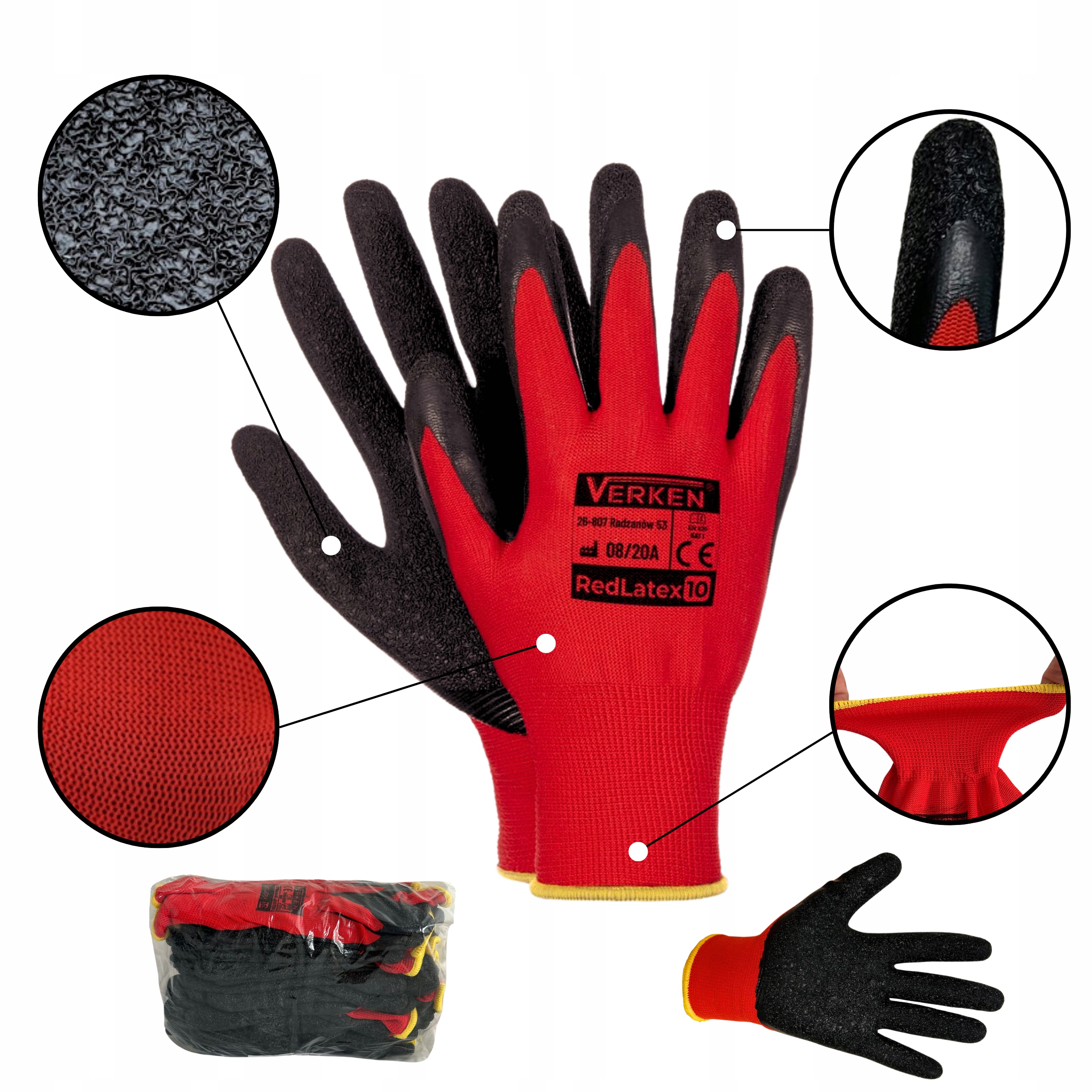 Protective, working gloves, coated with latex brand Verken h1> 12 pairs strong size XL - 10