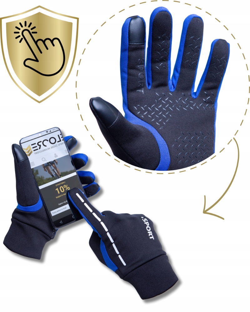 RĘKAWICZKI ROWEROWE M MĘSKIE ZIMOWE DAMSKIE CZARNE ODBLASK DOTYKOWE CIEPŁE