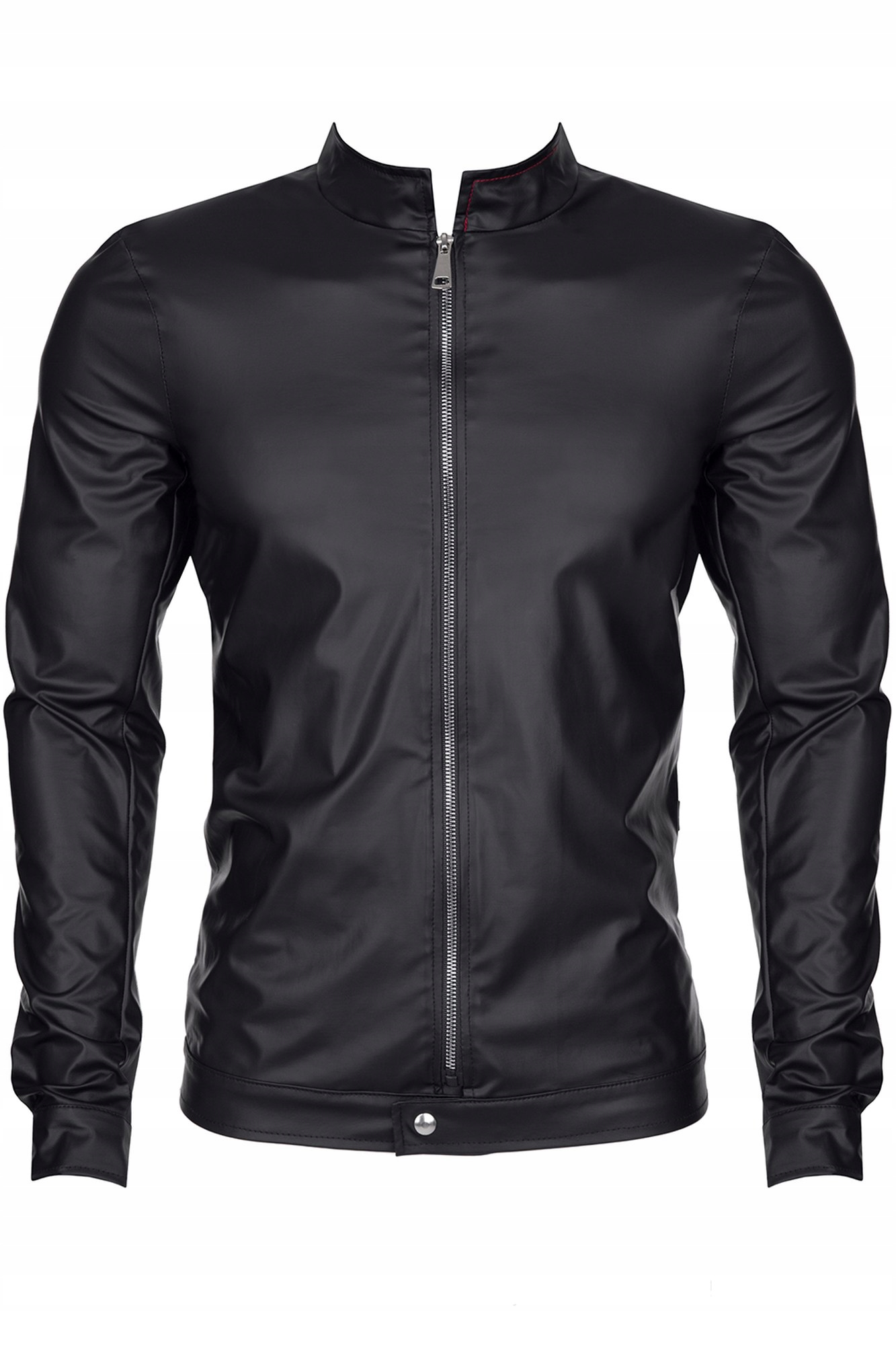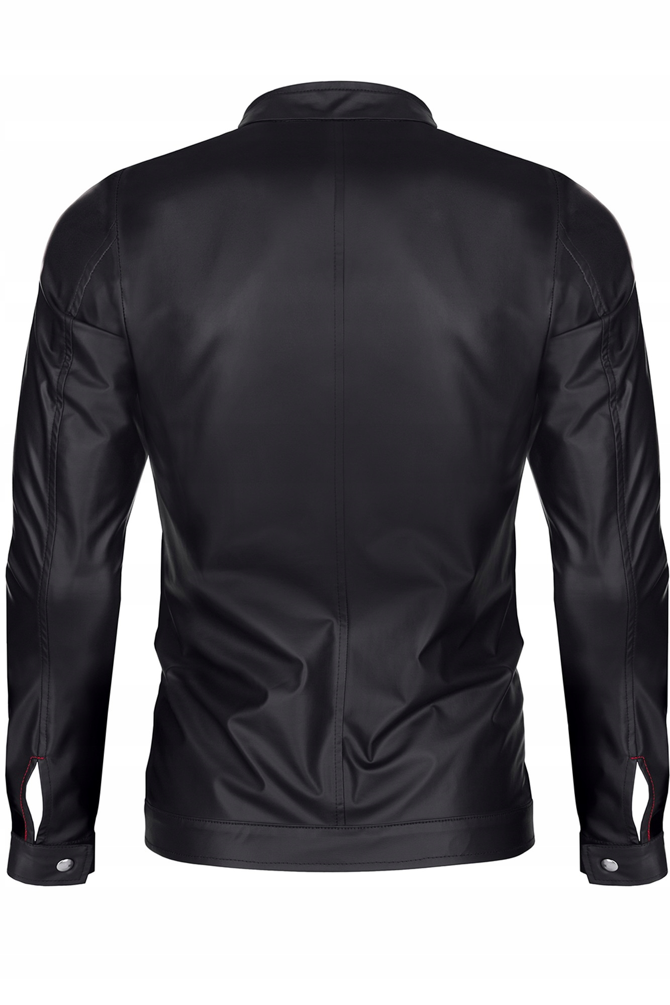 Коротка куртка, натхненна класичною формою флаєрів. Повністю виготовлений з високоякісного чорного мокрого вигляду. Короткий комір на шиї. Декоративні металеві застібки внизу спереду та на рукавах. Застібається на сріблясту блискавку з декоративною підвіскою з логотипом RFP. Червона декоративна строчка і червона накладка з алькантари з логотипом RFP підкреслюють увагу до унікальних і характерних деталей. Ідеально підходить для повсякденного стилю.