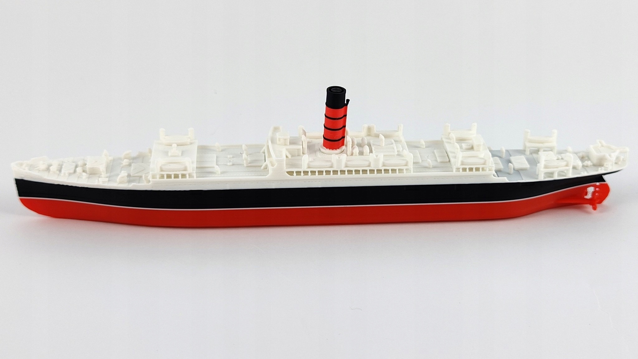 Модель не призначена для плавання - не має баласту і легко падає. Однак матеріал PLA стійкий до короткочасного контакту з водою, що ідеально підходить для гри під наглядом. Не залишайте модель у воді надовго - після контакту з водою ретельно висушіть її.