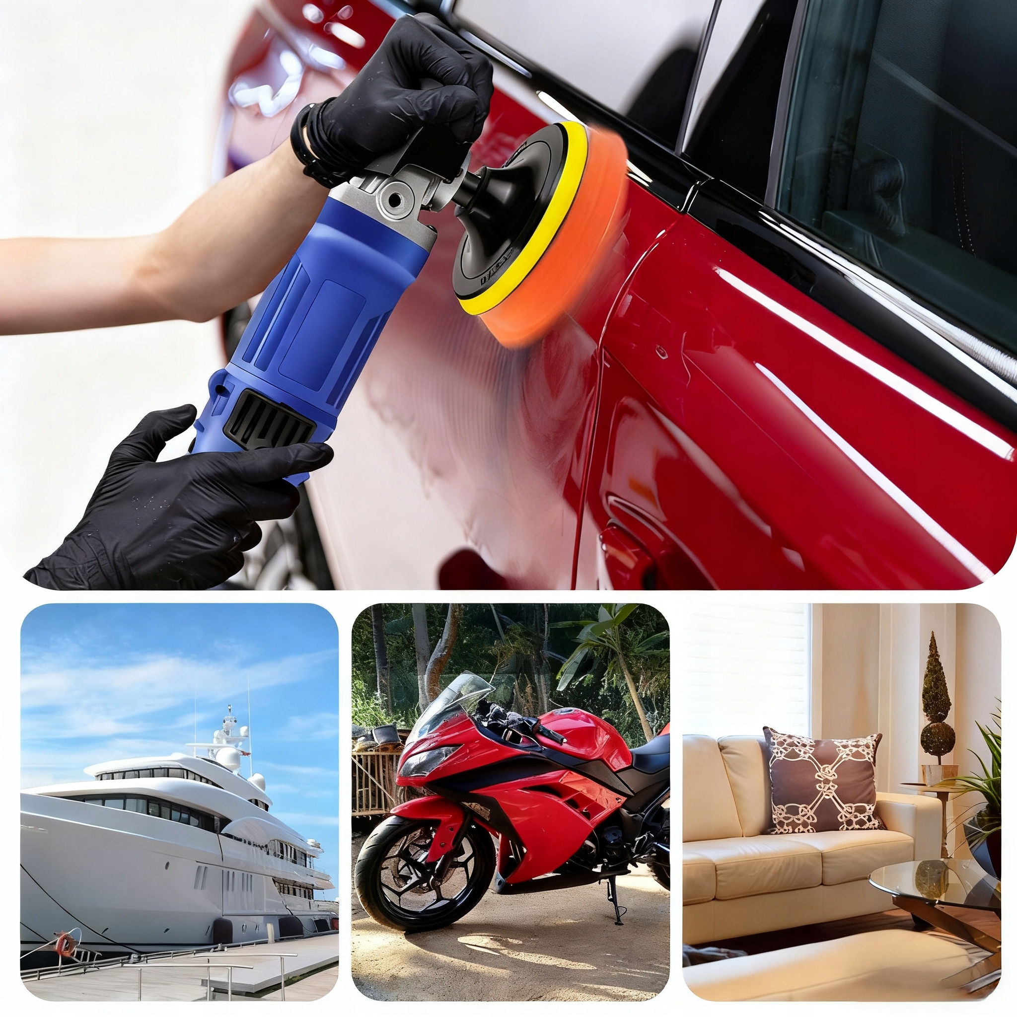 - Низька швидкість: підходить для таких процесів, як лакування та нанесення воску, уникає пошкодження поверхні фарби та забезпечує ідеальний блиск.