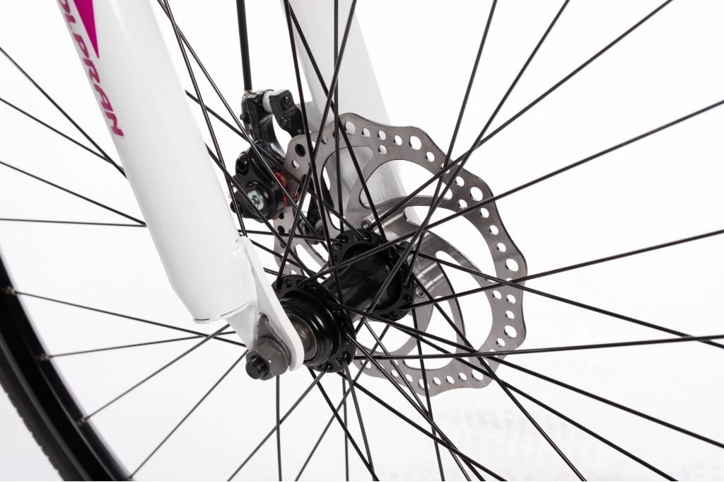 Дискові гальма повністю відрізняються від класичних гальм V-гальма. Вони набагато ефективніші та довговічніші, вони не руйнують колеса. Сила, що надається на щиті, значно вища, завдяки чому довжина відстані гальмування скорочується . Надзвичайно корисно в гірських районах, де ми часто стикаємося з раптовими гальмівними ситуаціями.
