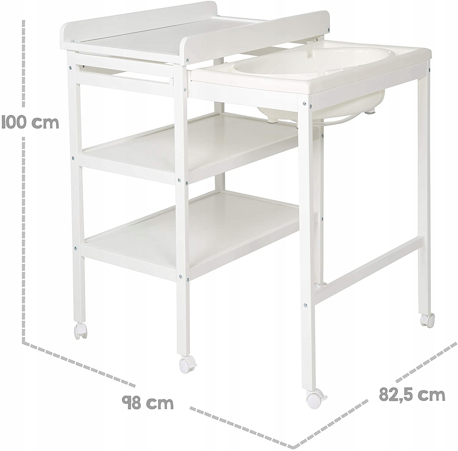Крім того, комбінація ванни та пеленального столика має 6 гальмівних роликів для зручного транспортування та два відділення для зберігання всього необхідного приладдя для догляду.