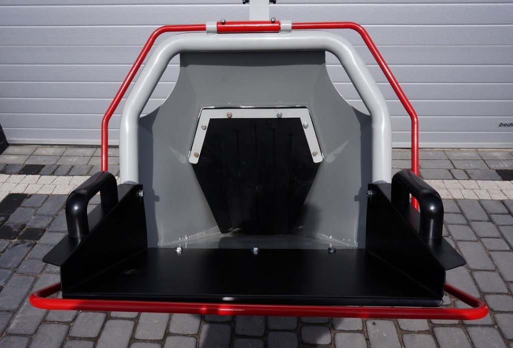 Високо розташоване різання вирізаного матеріалу дозволяє замінити тачку для прямого матеріалу. Велика та довга воронка забезпечує легку та безпечну роботу.
