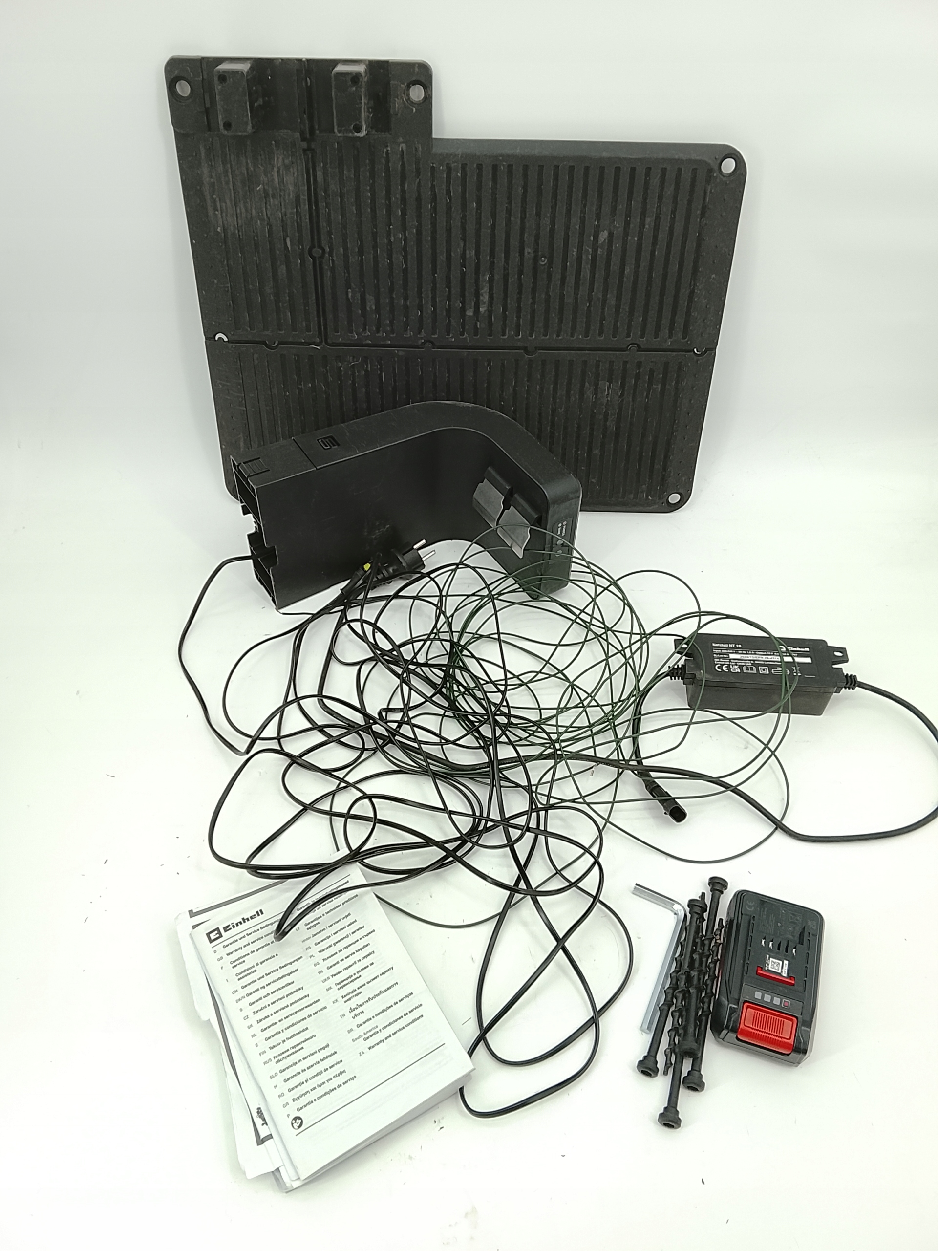 Пристрій разом із базовою запусками - Увага - Пін -код для косарки Невідома! Інструкції в наборі - Оселедця немає; або всі гвинти до землі. А також чотири білі та сині пластикові елементи, видно на фотографії виробника.