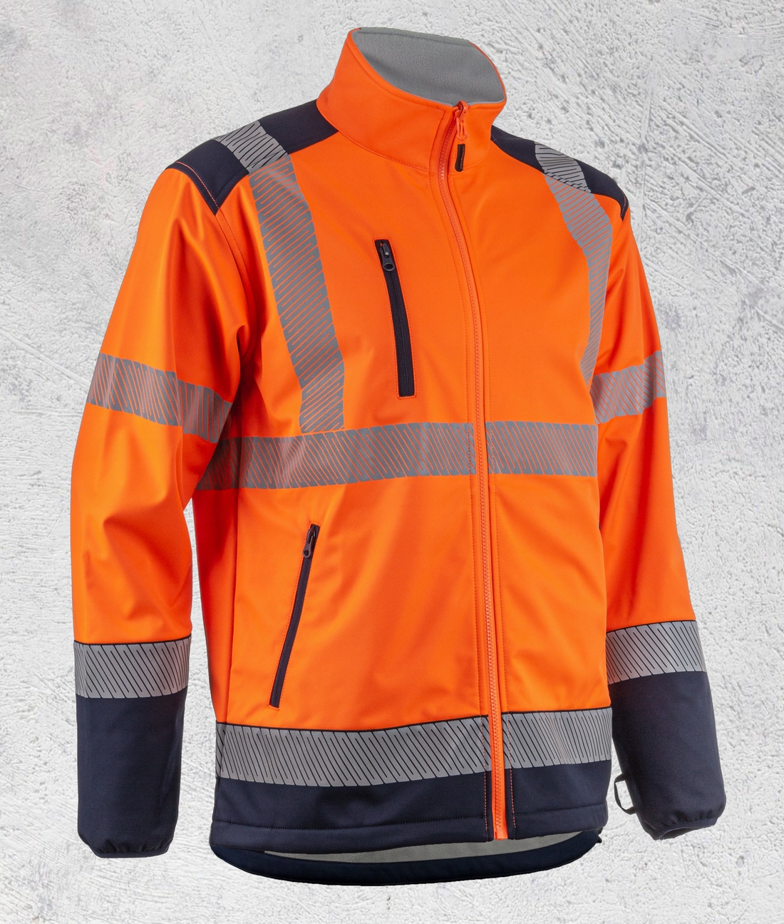 ✅ МАТЕРІАЛ: 3-шарова куртка софтшел: 100% поліестер + ТПУ мембрана + мікрофліс - 300 г/м2. Світловідбиваючі стрічки: сегментовані мікрокулькові стрічки - 5см. Варіанти кольорів: HV оранжевий/темно-синій.