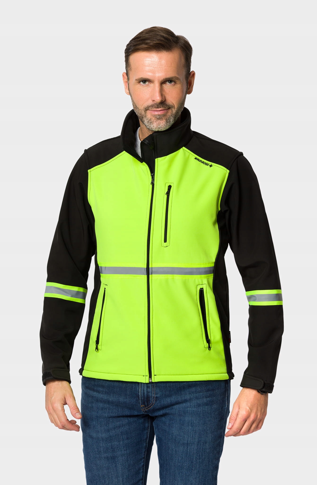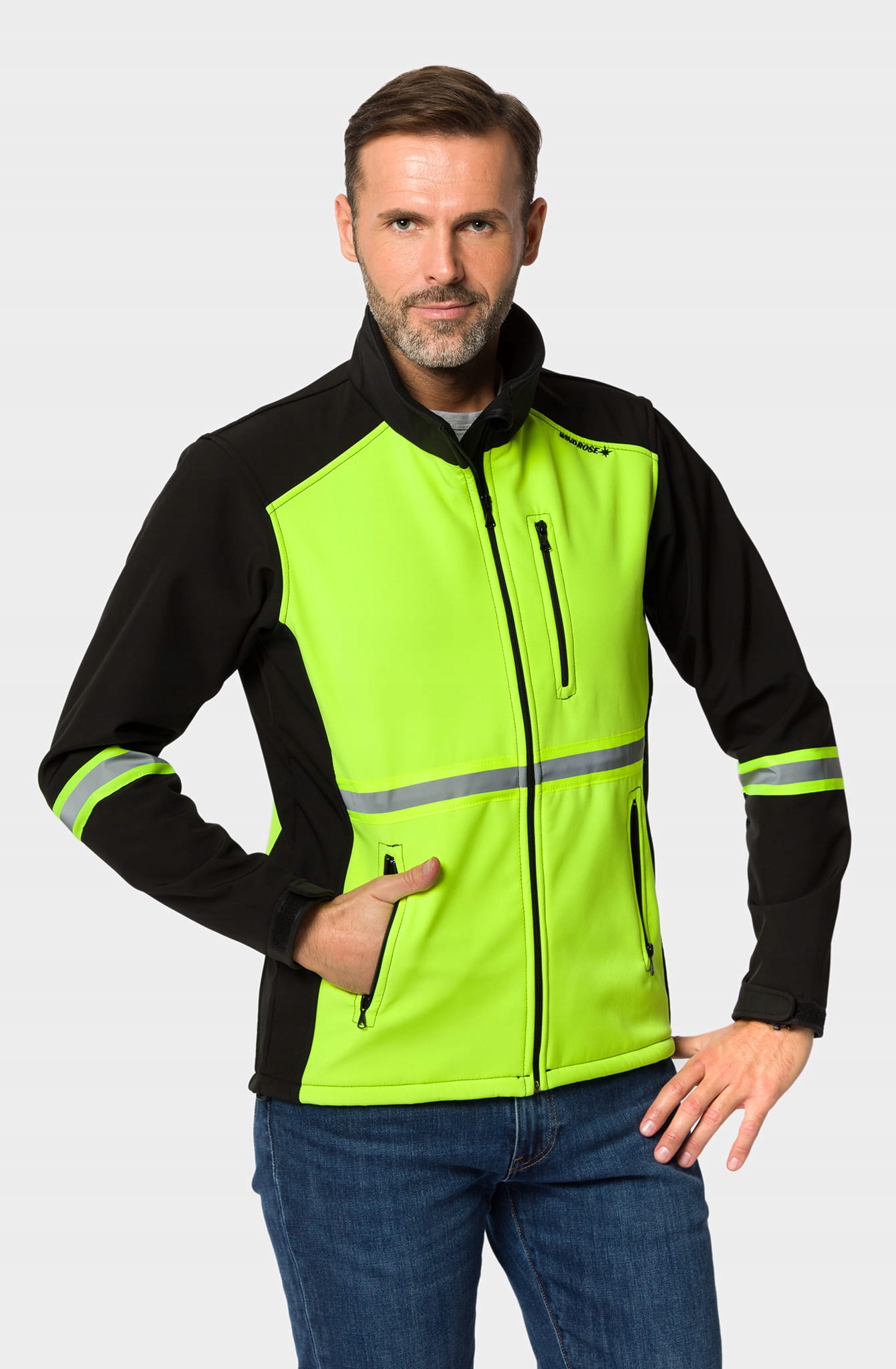 Високоякісна чоловіча куртка SOFTSHELL FLUO з високою водонепроникністю мембрани 10 000 мм/м2.