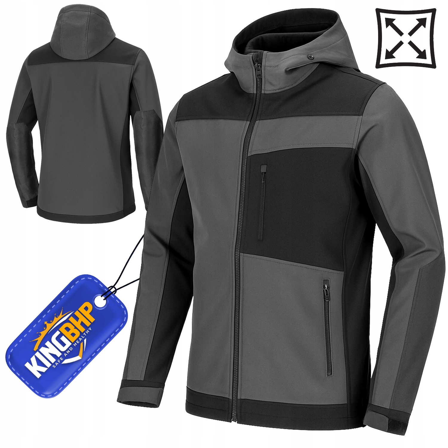 Захисна куртка, o надзвичайно привабливий дизайн та функціональність . Виготовлений з дуже міцної та гнучкої тканини T Softshell з 4-х дорогоцінним розтяжкою 96% поліестеру, 4% еластану з вагою 280 +/- 10 г/м2 та сильним компактним плетінням, що забезпечує оптимальний баланс між опорою до зносу та комфорту та користувачем комфорту .