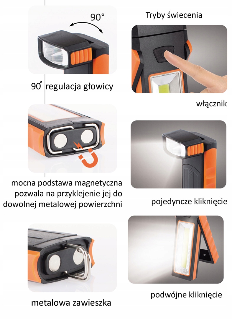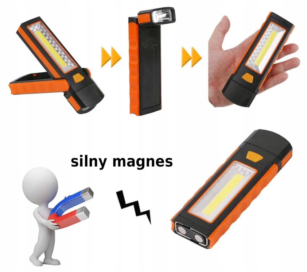 Ліхтарик має два гачки, що відкриваються, завдяки якому ви також можете його повісити. Крім того, корпус має дві магнітні ручки .
