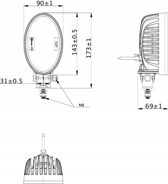 Світлодіодна робоча лампа, овальна 24W 2240lm розсіяне світло 8 LED Kramp