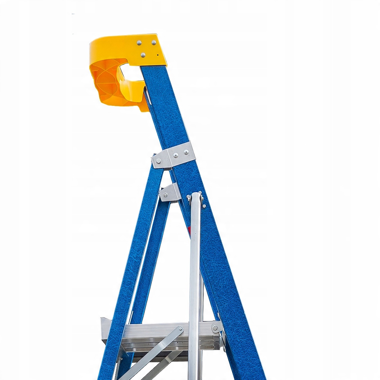 - Fiber Tech Tele має велику платформу для безпечної роботи на висоті та дві телескопічні опори.