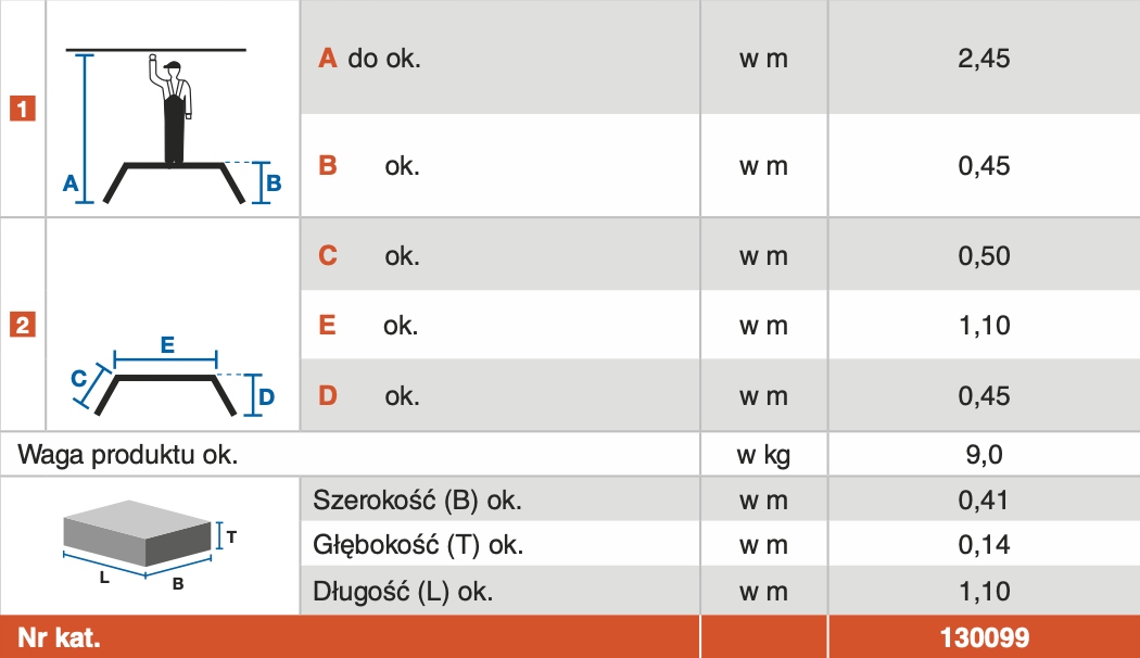 Робоча платформа Monto StepTop забезпечує велику поверхню для стояння. Оснащений стрингерами з порошковим покриттям. Невеликі розміри платформи в складеному вигляді.