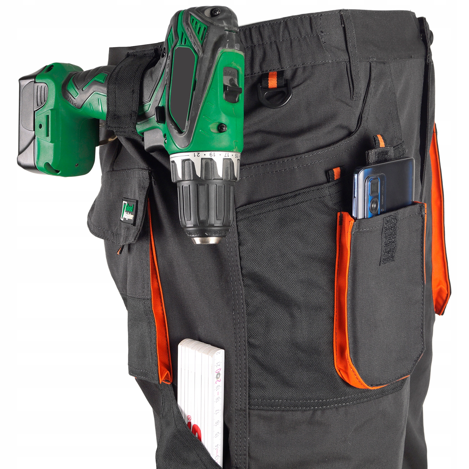 З правого боку є ✔️тримач електроінструменту ✔️ , до якого можна прикріпити, наприклад, викрутку. Ручка має велике та міцне монтажне вушко, до якого можна прикріпити карабін для акумуляторних інструментів.