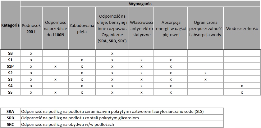 - сталевий носок стійкий до ударів з енергією до 200 Дж і розчавлення до 15 кН