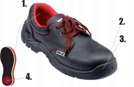 - сталевий носок, стійкий до ударів з енергією до 200 Дж і роздавлюванням до 15 кН