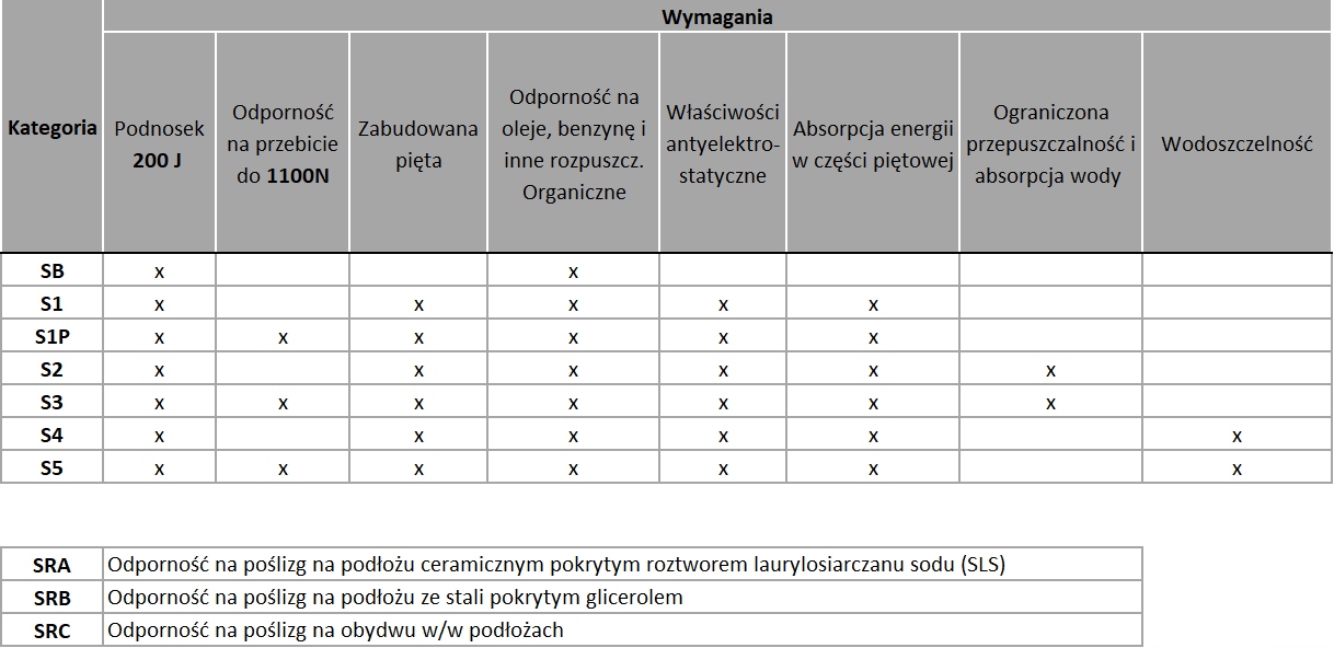 Категорії захисного взуття згідно з PN-EN ISO 20345
