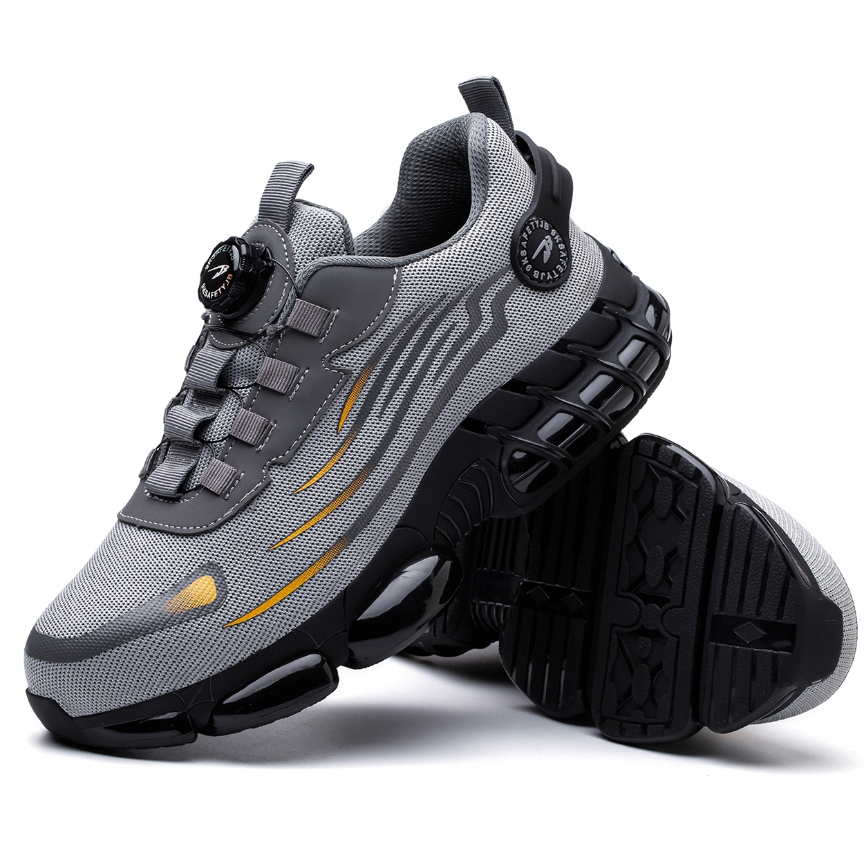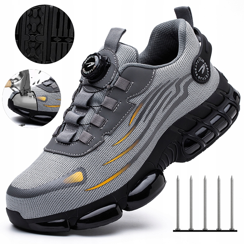 Замість класичних шнурівок використовується сучасна система регулювання ручкою - достатньо одного руху руки, щоб точно підібрати взуття до ноги. Покрутіть, щоб зняти - потягніть, щоб зняти. Це не лише зручне, але й безпечне рішення в динамічному робочому середовищі, де кожна секунда на рахунку.