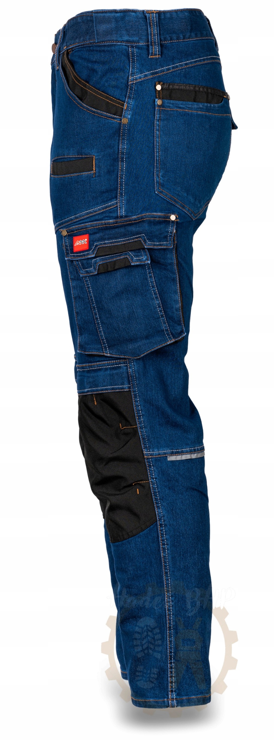 Робочі джинсові штани стрейч – це зручний і сучасний крій із звуженими штанинами, які жодним чином не сковують рухів, завдяки використанню матеріалу з додаванням еластану. Виготовлений із тканини найвищої якості, що складається з: 70% бавовни, 28% поліестеру, 2% еластану з щільністю 340 +/- 10 г/м2 і міцного щільного плетіння.