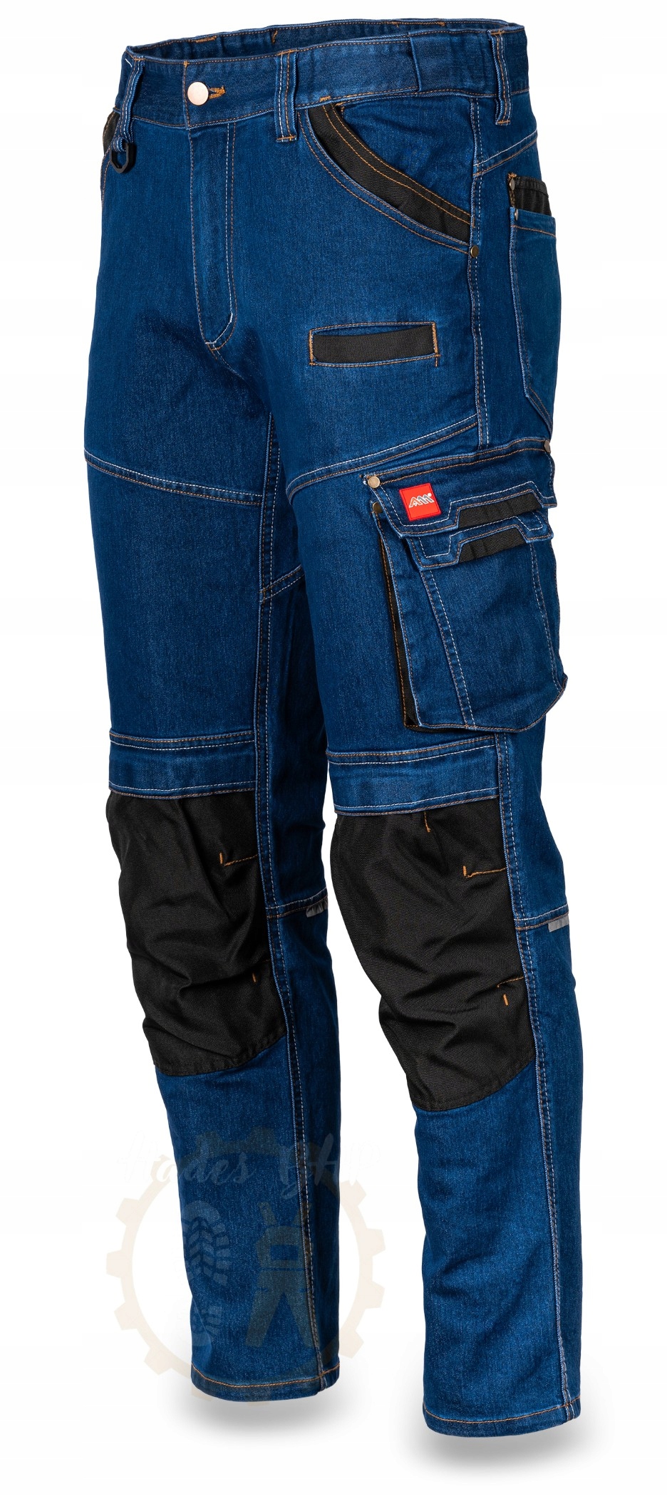 Робочі джинсові штани стрейч - це зручний і сучасний крій із звуженими штанинами, які жодним чином не сковують рухів, завдяки використанню матеріалу з додаванням b>еластану. Виготовлений з тканини найвищої якості, яка складається з: 70% бавовни, 28% поліестеру, 2% еластану з щільністю 340 +/- 10 г/м2 і міцною, щільне плетіння. p>