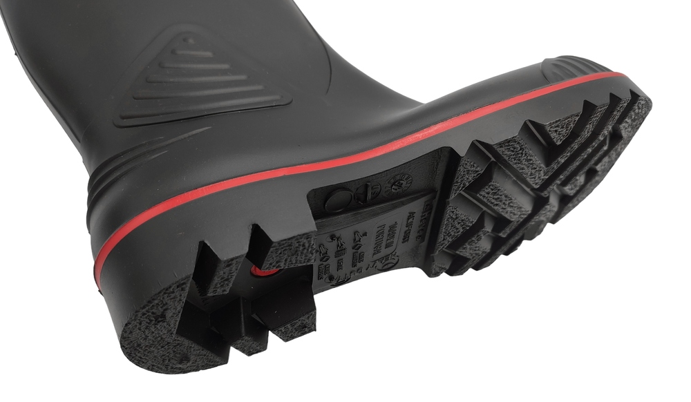 Унікальний винахід компанії Dunlop із ПВХ, нітрильного каучуку та полімерів/ Нітрильний каучук забезпечує довший термін служби та кращу стійкість до масла, жиру, крові та хімікатів/ Полімери додають гнучкості взуття, таким чином підвищуючи комфорт