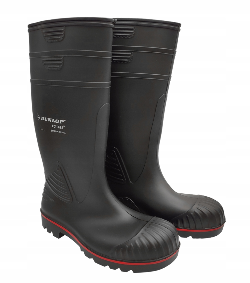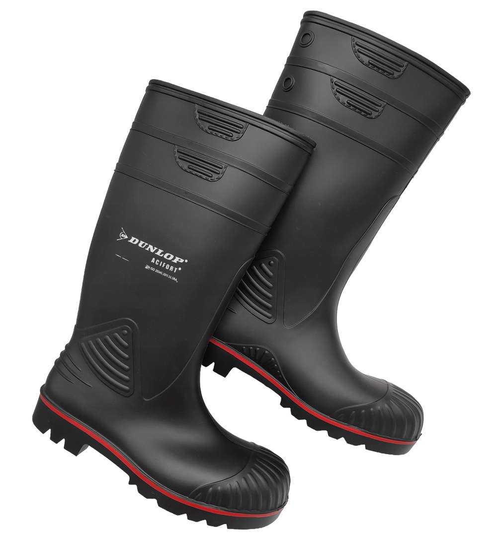 Дощові черевики DUNLOP ACIFORT HEAVY DUTY FULL SAFETY S5 SRA чорні. Взуття забезпечує повну безпеку. Він має захисний сталевий носок і проміжну підошву, що забезпечує захист від проколів, а також має антистатичні властивості та маслостійку нековзку підошву. Черевики Wellington забезпечують захист від холоду, ковзання та спотикання, бруду, масла, гною, хімікатів або копит тварин. Взуття Dunlop розроблено відповідно до вимог безпеки в певних середовищах і відповідає найвищим міжнародним стандартам безпеки. 100% водонепроникне взуття. Антистатичні. Хімічно стійкий. Забезпечує хорошу посадку та підтримку. Практичні захисні велінгтони для складних умов. Колір: верх - чорний, підошва - чорний + червоний. Розмір: 39 - 49. Матеріал: верх - Acifort®/ підошва - Acifort®.