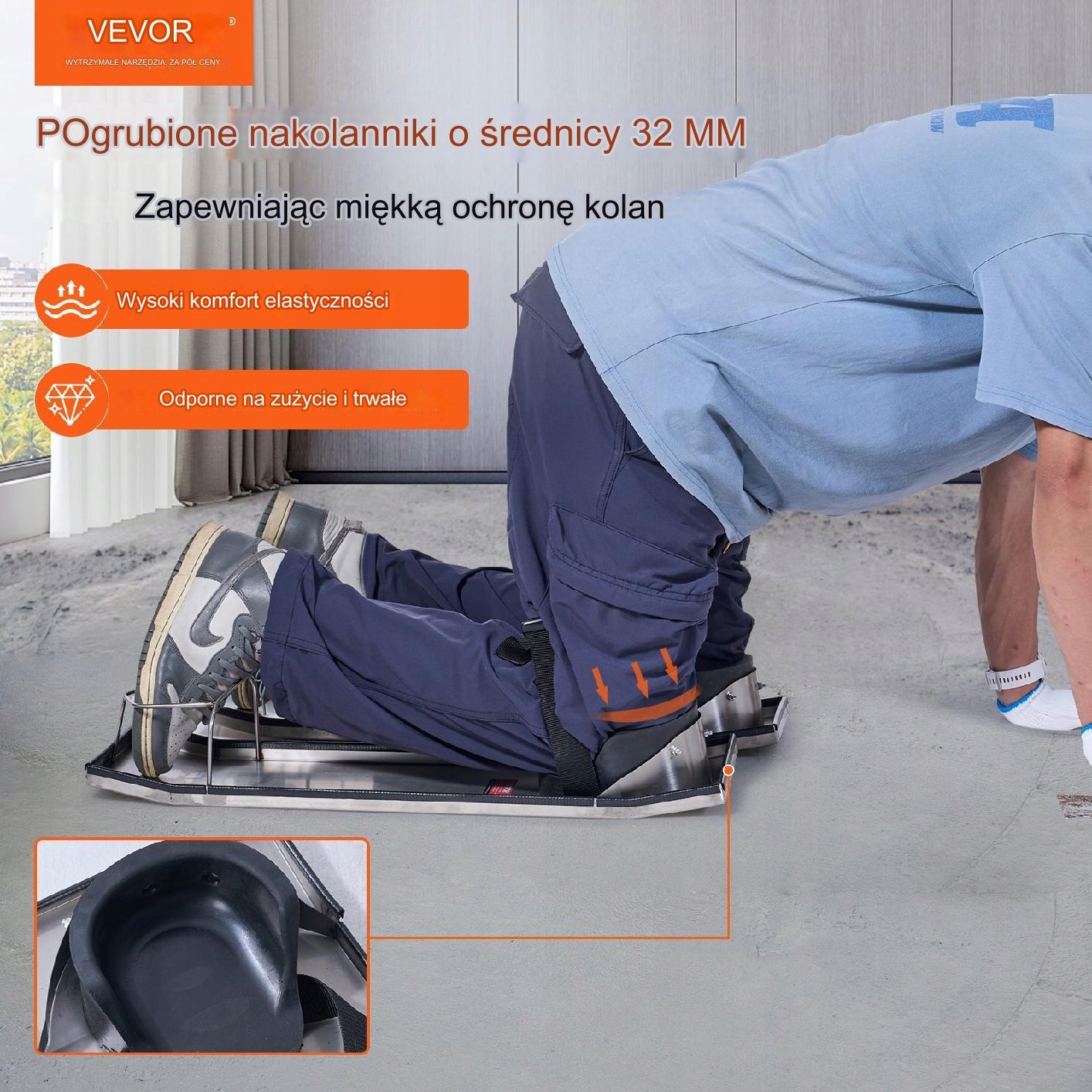 Бетонні наколінники оснащені привареними опорами для пальців, які забезпечують стійке розміщення та фіксацію пальців. Це дозволяє швидко й ефективно пересуватися по робочій поверхні, запобігаючи від’єднанню дощок від тіла та забезпечуючи точний контроль під час роботи.