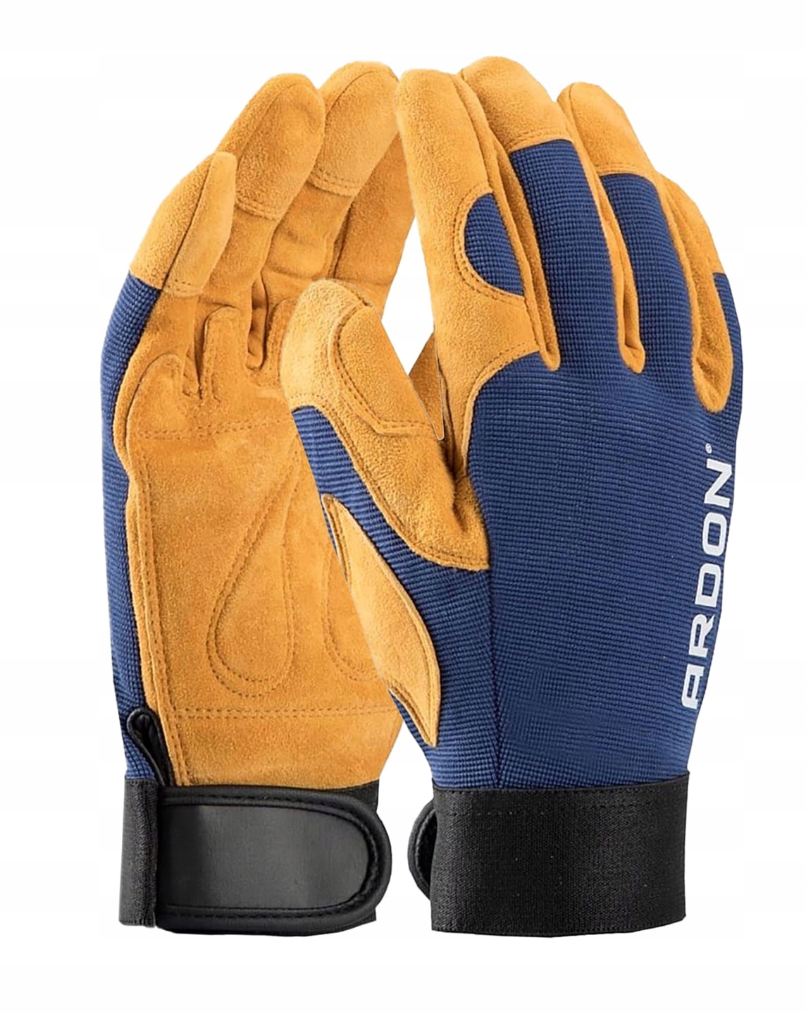 Професійні робочі рукавички ARDON, виготовлені з поліестеру та еластану, додатково посилені зернистою шкірою.