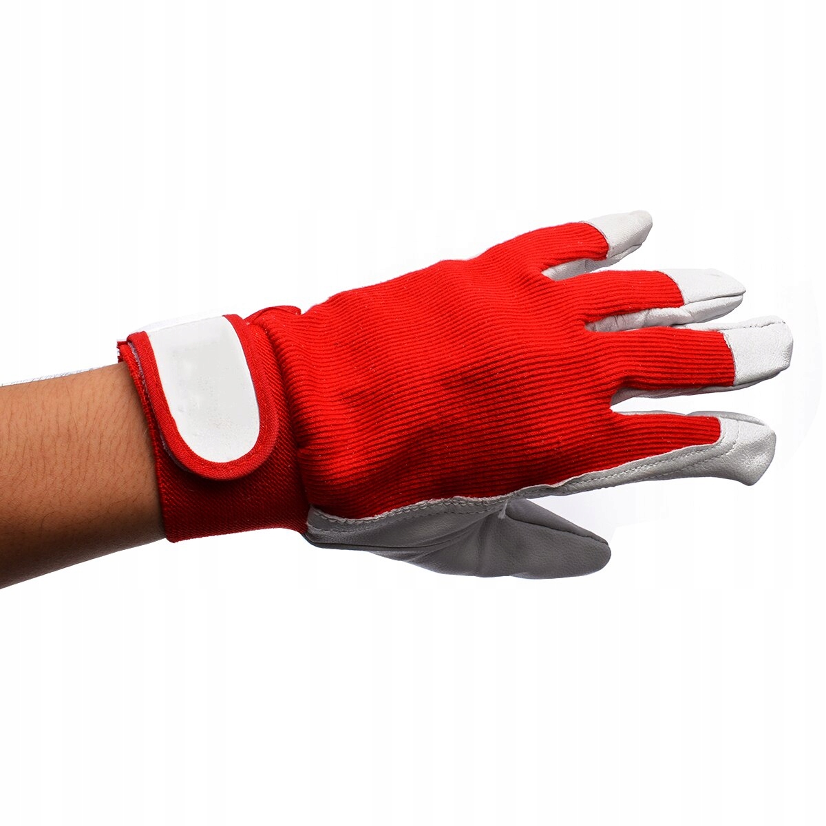 Захисні рукавички, посилені м'якою козячою шкірою, еластичний червоний бавовняний трикотаж. Рукавички з липучкою, що дозволяє правильно підлаштувати зап’ястя під різні розміри.