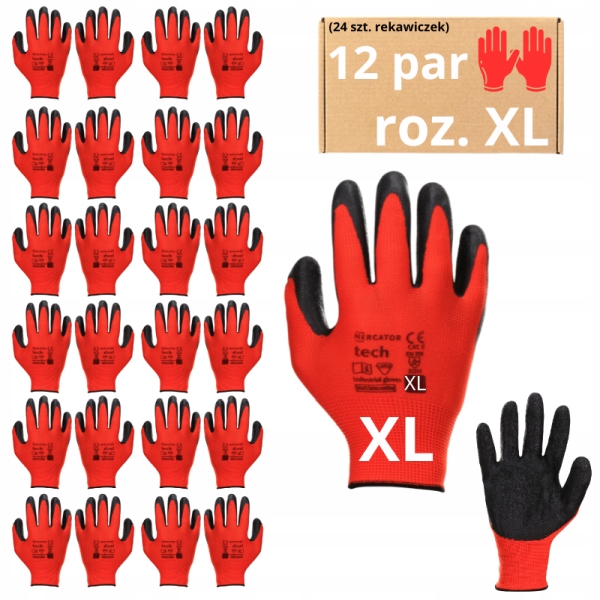 Робочі рукавички MERCATOR tech RED & BLACK 12 пар