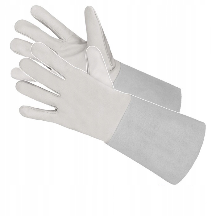 Міцні рукавички на п'ять пальців з високоякісної козячої шкіри натурального кольору. Довга посилена манжета на передпліччі зі спиленої волової шкіри ідеально захищає всю руку до ліктя. Захоплююча частина рукавички виготовлена з одного шматка шкіри, що робить рукавичку набагато м’якшою та забезпечує кращу спритність у рукавичці. Відповідна м'якість шкіри забезпечує точну роботу.