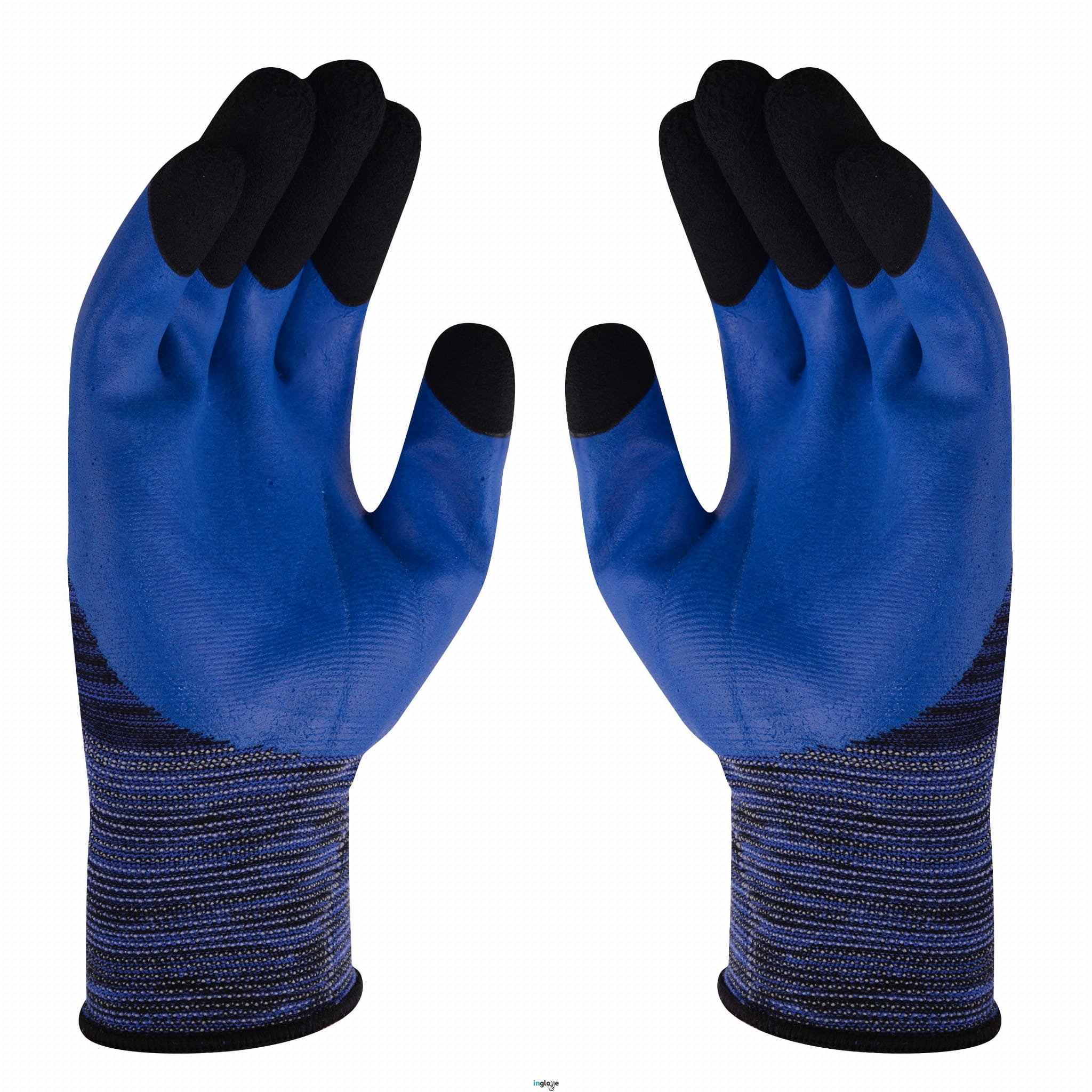 ✅Рукавички виготовлені з міцного синього кольору. поліестеровий трикотаж. П'ясткові кістки покриті гладким латексом, а кінчики пальців - спіненим латексом, що гарантує хороший зчеп і відчуття утримуваних предметів, а також захищає від мозолів. ✅Рукавички закінчуються приємною на дотик еластичною манжетою, яка ідеально адаптується до форми зап'ястя, забезпечуючи повний комфорт роботи. Крім того, вони стійкі до стирання, порізів, розривів і проколів, що гарантує їх довгий термін служби.
