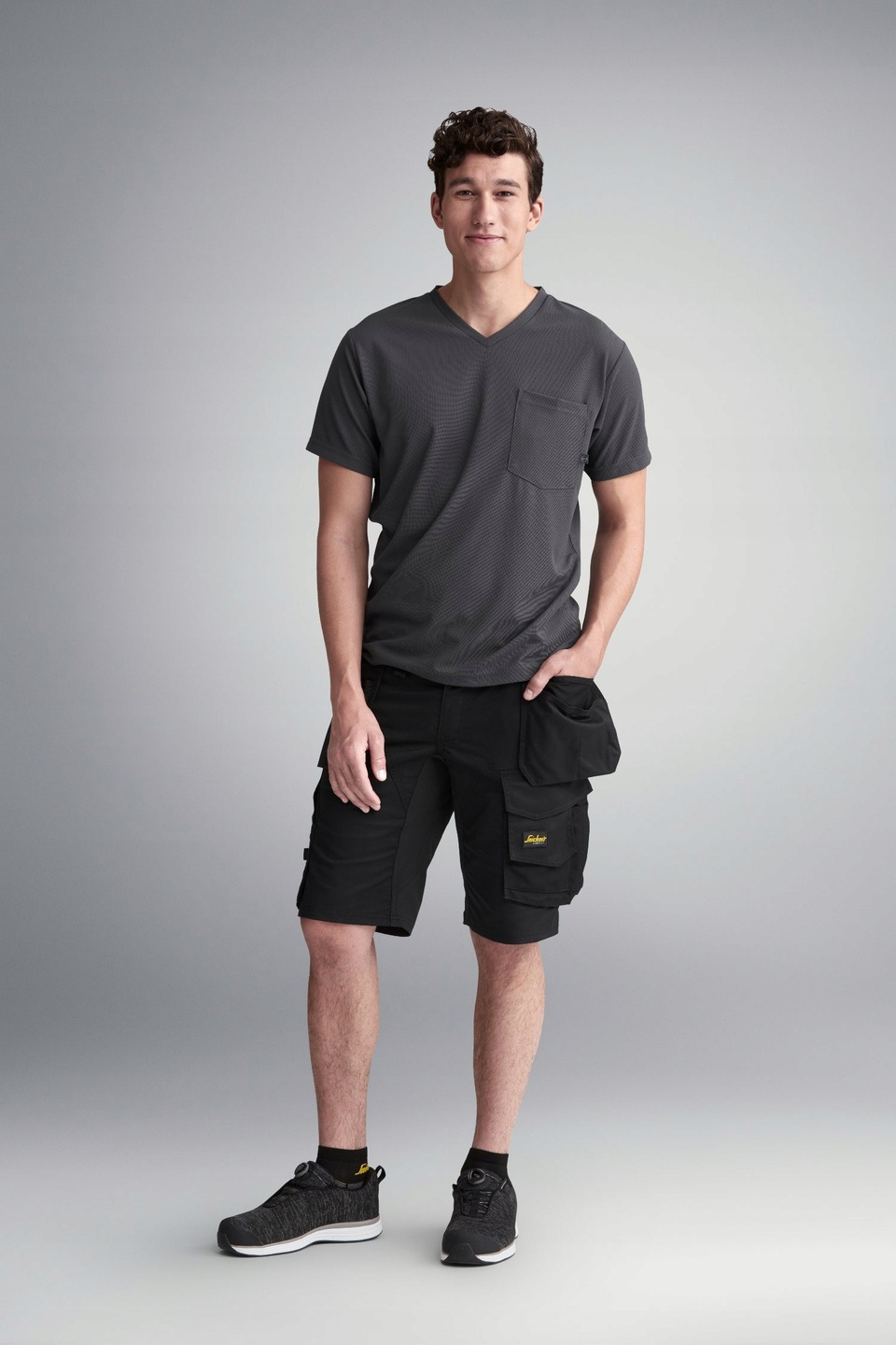 Робочі шорти Snickers 6141 Stretch вирізняютьсялегкістю та високою міцністю. Чоловічі шорти виготовлені з еластичної тканини, яка стійка до розривів і стирання і не обмежує свободу рухів. Присідати, ходити або підніматися по драбині в цій моделі зовсім не проблема. Чоловічі шорти оснащені численними практичними кишенями і додатково мають дуже місткі кишенькові сумки, тому в них можна легко помістити всі найнеобхідніші інструменти та аксесуари для роботи.